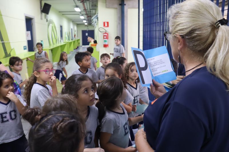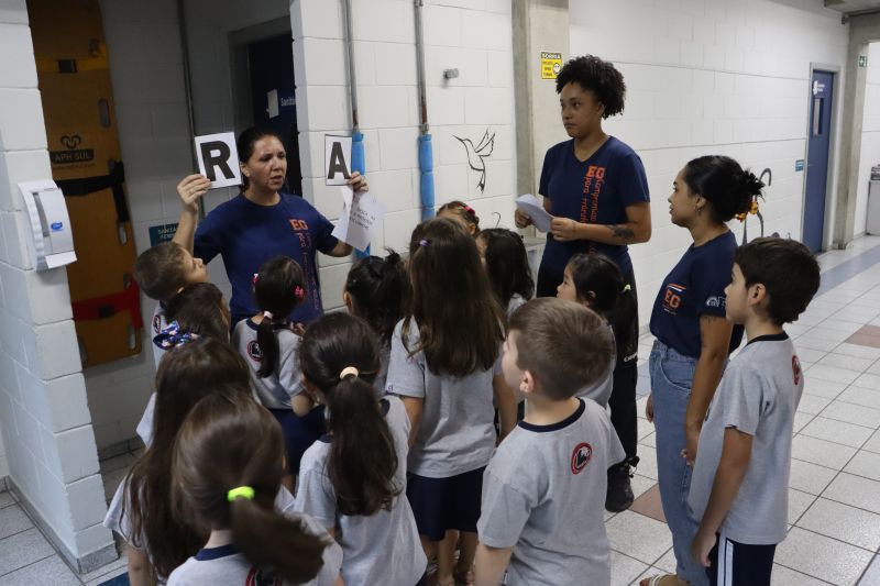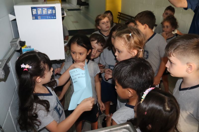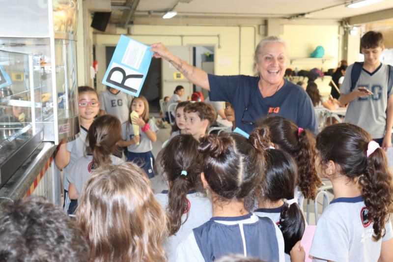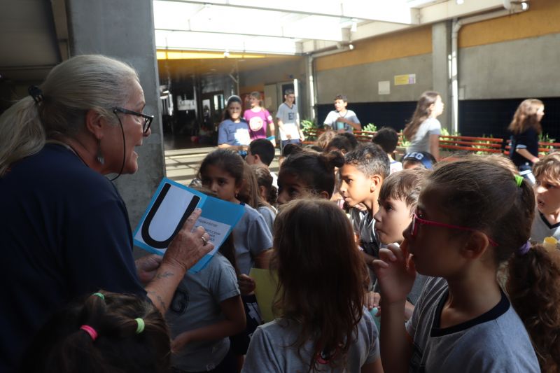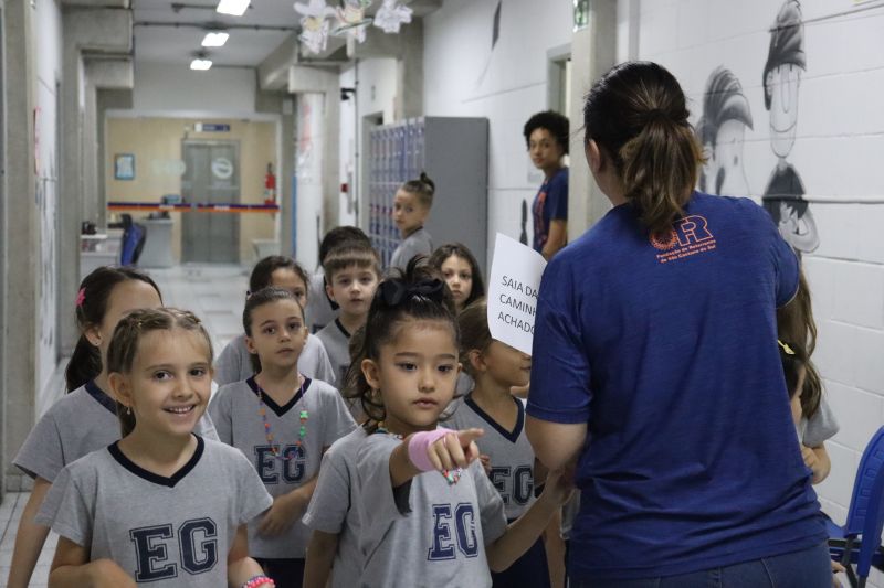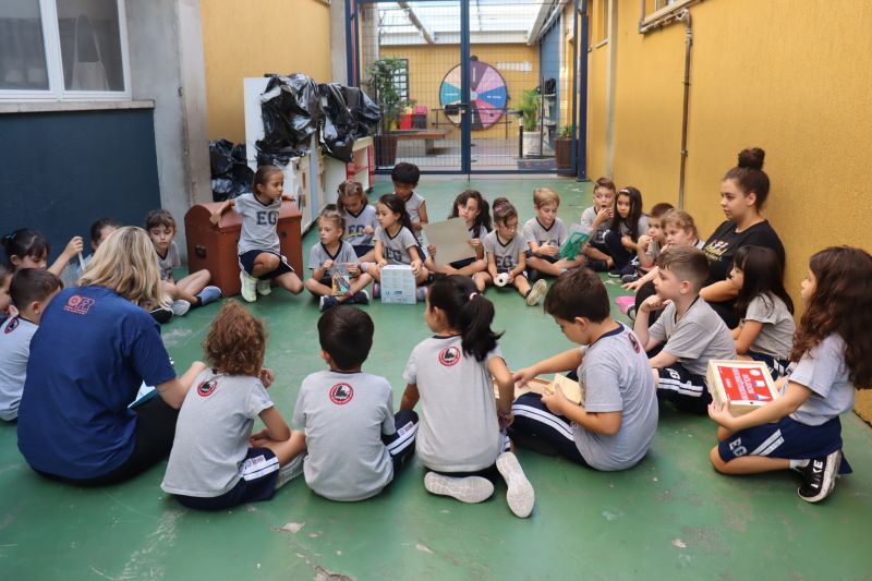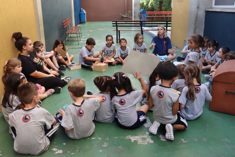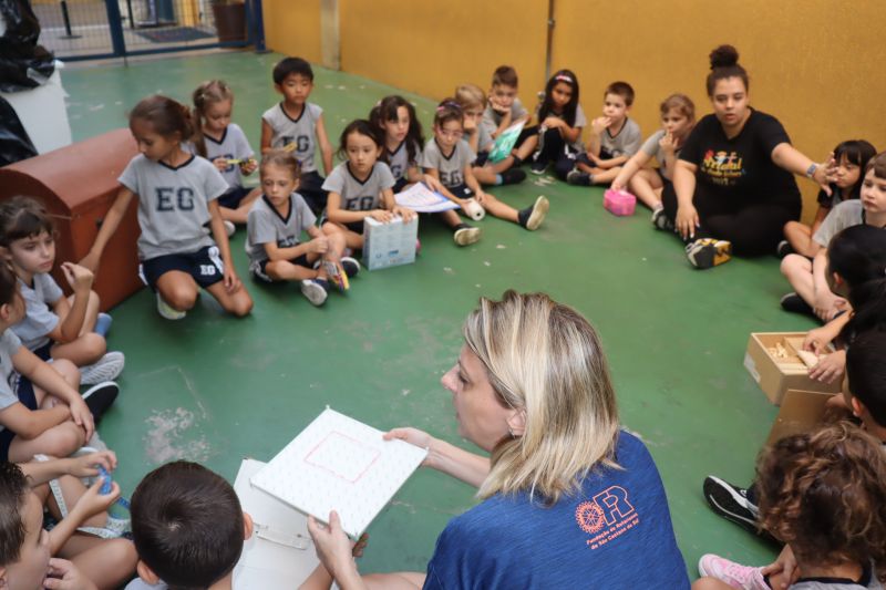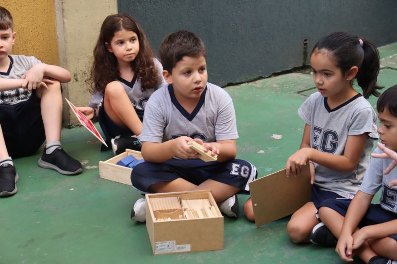 Várias pistas foram espalhadas pelo Colégio e, para que o tesouro fosse encontrado, os estudantes tiveram de decifrar todas elas. O tesouro era formado por diversos materiais que eles utilizarão nas aulas de Matemática durante o ano, como material dourado, trena, régua, fita métrica, balanças, sólidos geométricos e geoplano, entre outros.