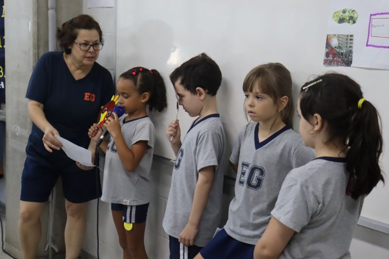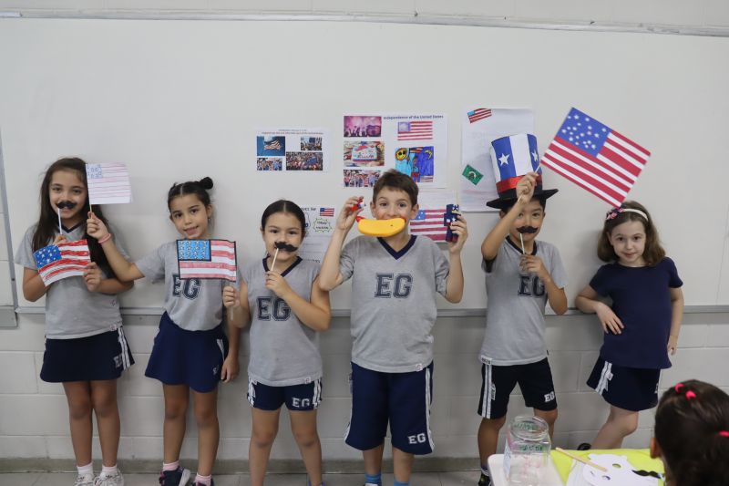 Na última etapa, apresentaram os trabalhos para a turma, utilizando acessórios e objetos que remetiam à data, como bandeiras, símbolos, roupas, etc.