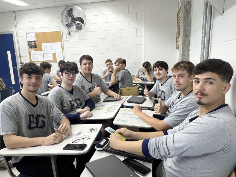 Os estudantes da 3ª série do Ensino Médio, orientados pela Professora Paula, de Literatura, participaram de um jogo da memória sobre os movimentos literários (do Trovadorismo ao Romantismo).
