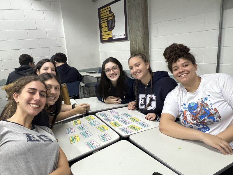 Para realizar a atividade, os alunos dividiram-se em grupos e revisaram cada conceito através desse jogo leve e dinâmico.