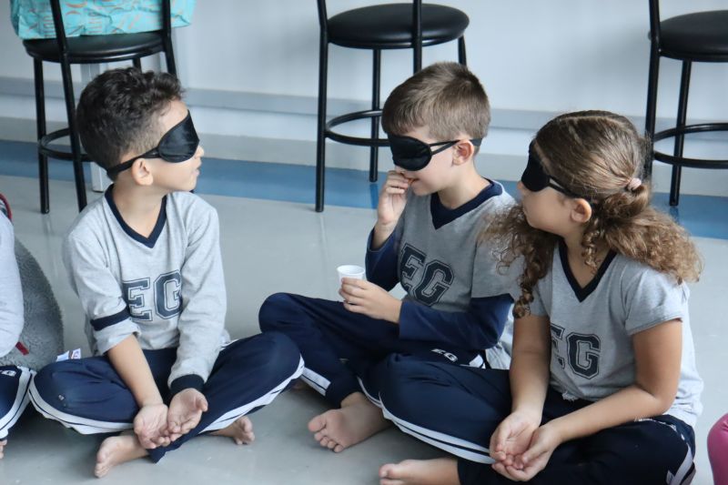 Além de compreender e explorar mais os cinco sentidos, os estudantes se divertiram muito durante a aula.