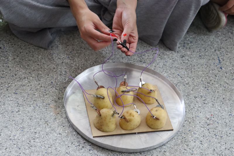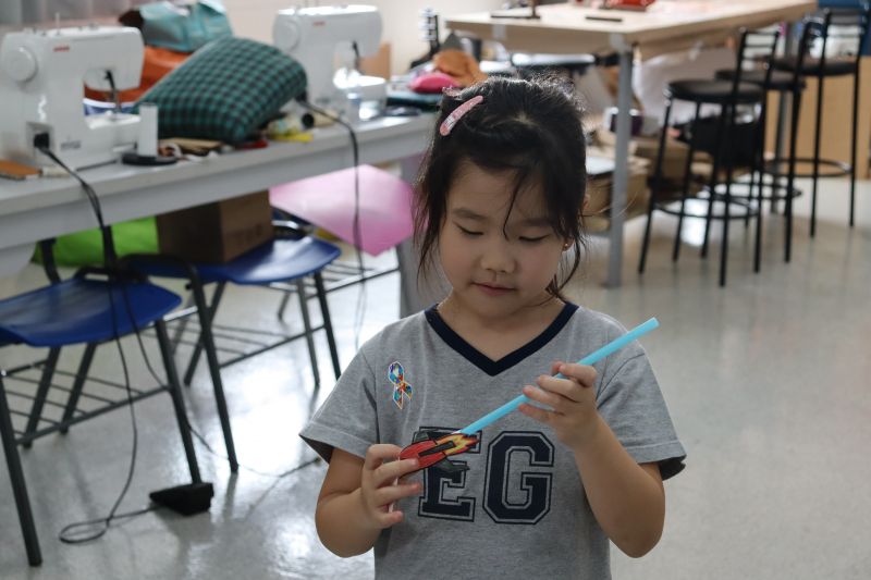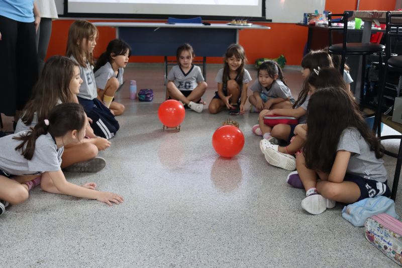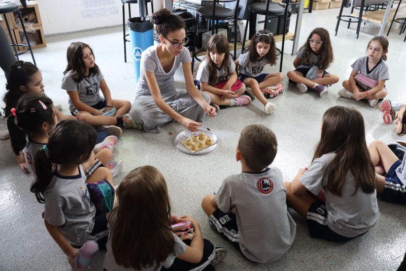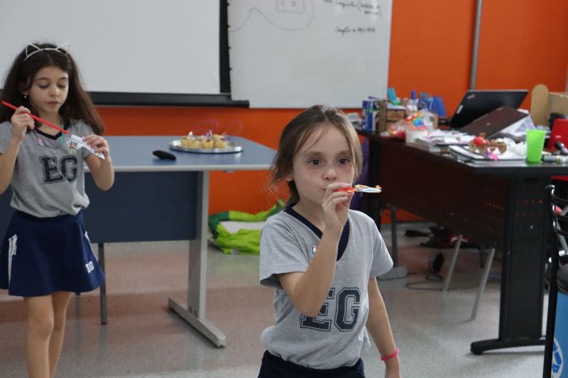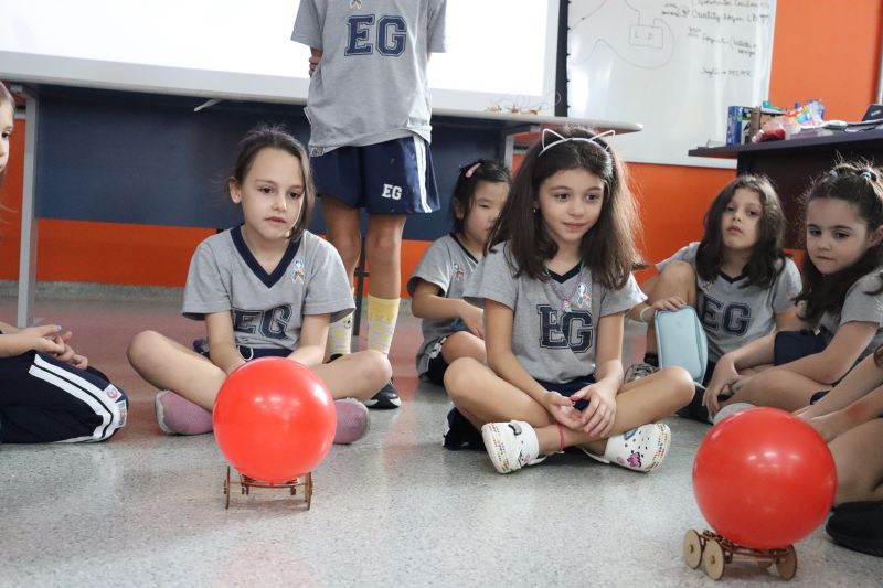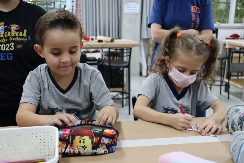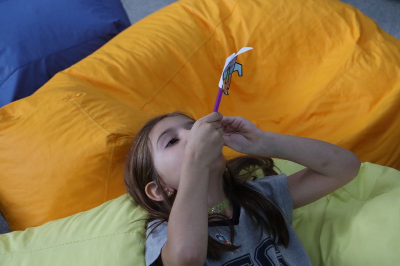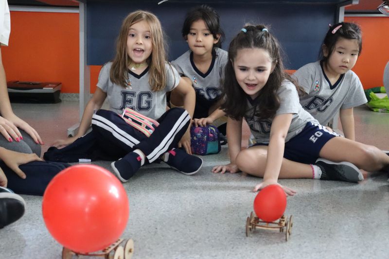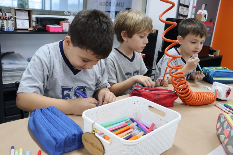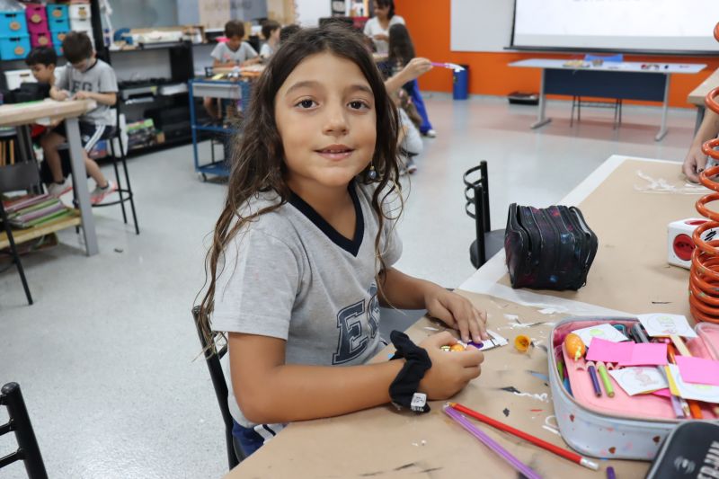 A Virginia, responsável pelo espaço, explicou para os alunos sobre os diferentes tipos de energia e, posteriormente, os estudantes identificaram brinquedos ou objetos que funcionam com pilhas, energia elétrica, energia eólica e com a força do corpo humano.