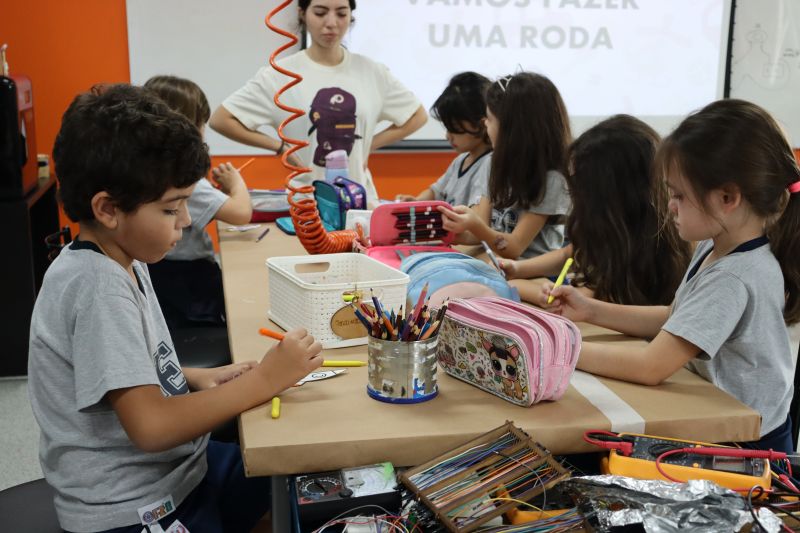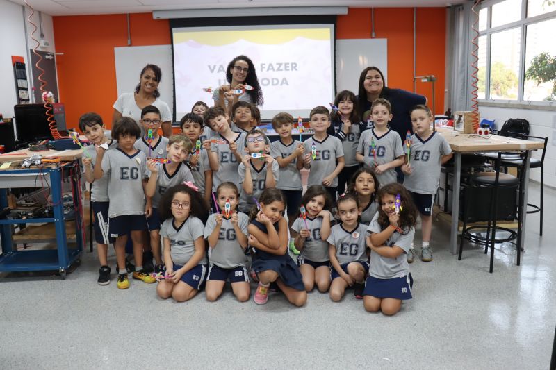 Os alunos do 1º ano EF, acompanhados pelas Professoras Cida, Eny, Marcela e Valquíria, foram até o Espaço Maker para ter uma aula muito interessante e divertida.