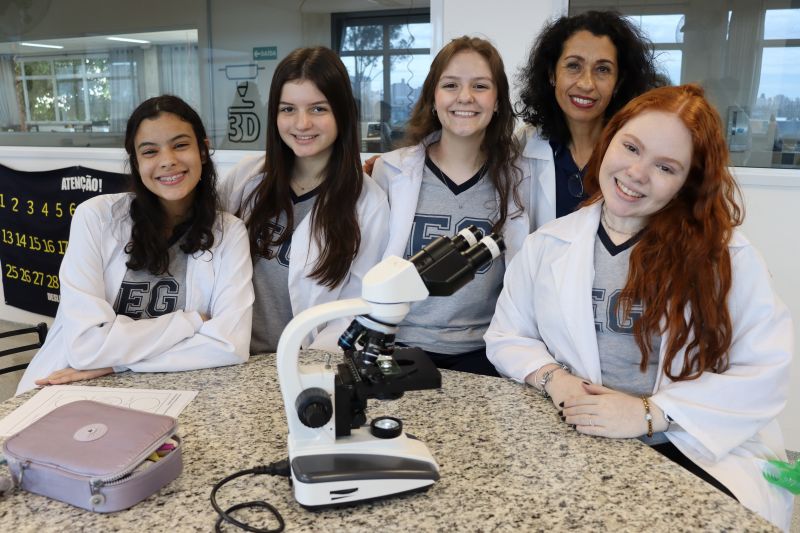 Os alunos da 1ª série do EM foram ao Laboratório de Biologia, acompanhados pela Professora Valquíria, para realizarem experimentos com o microscópio óptico.