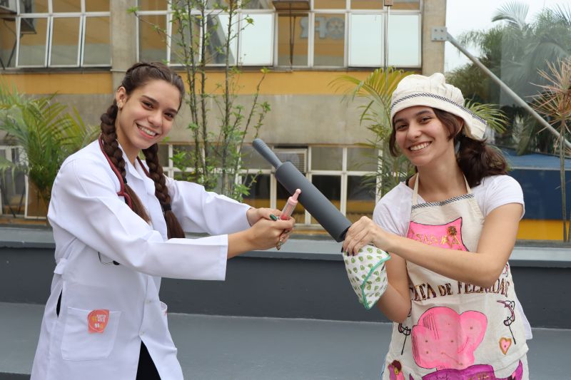 Cada aluno escolheu uma profissão e vestiu-se com elementos e uniformes característicos.