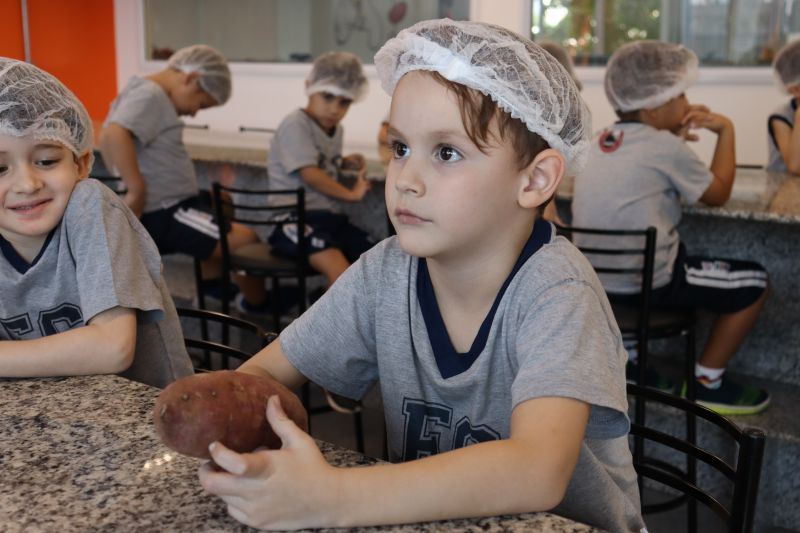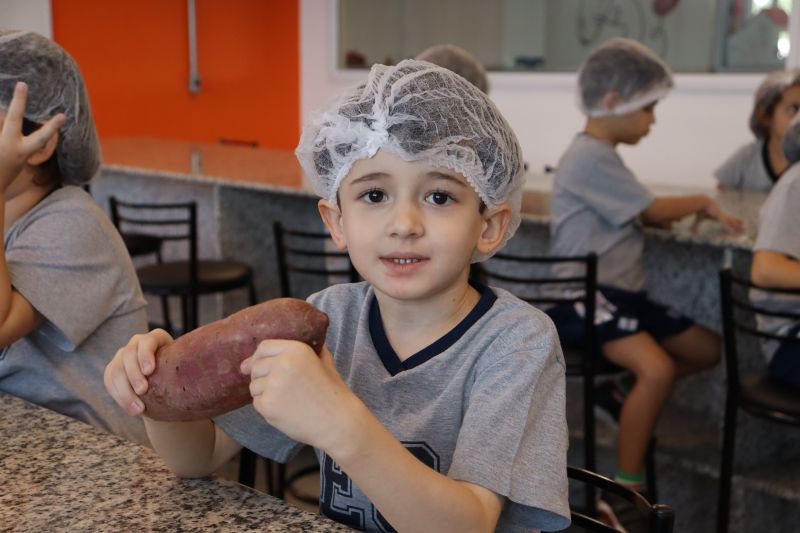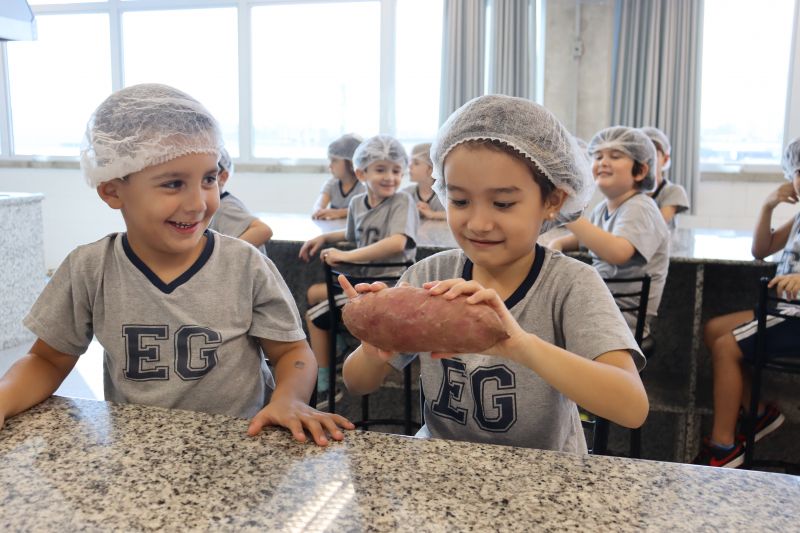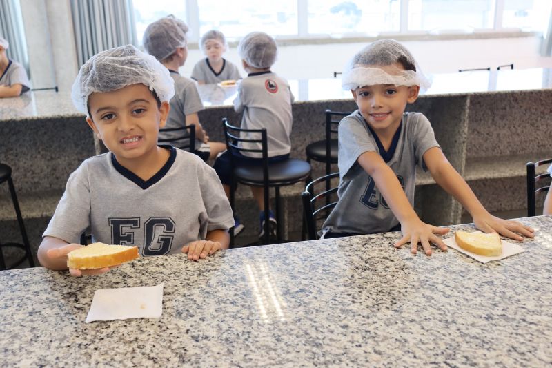 Sob orientação do Professor Carlos, responsável pelo espaço, prepararam um delicioso pão de mandioca. A aula teve o de objetivo aprofundar conhecimentos, mostrando aos pequenos como esses alimentos estão inseridos em nosso dia a dia.