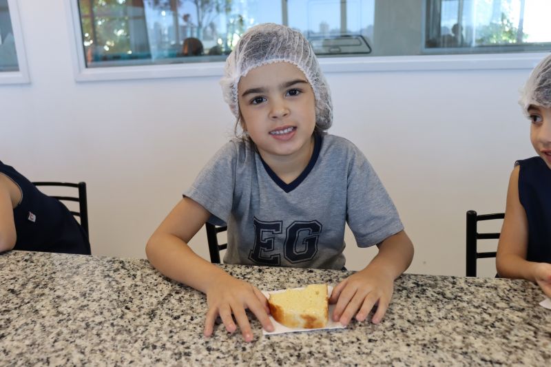 Para finalizar a aula, os estudantes se deliciaram, degustando o pão.