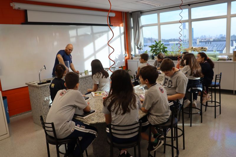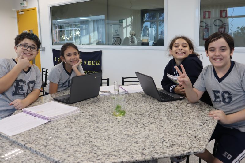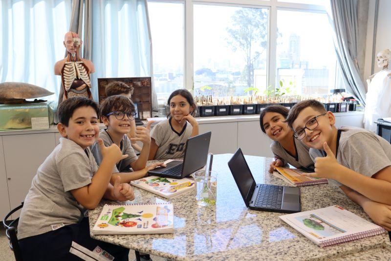 Os estudantes do 4º ano do EF foram ao laboratório para analisar um experimento sobre liberação do gás oxigênio no final do processo de fotossíntese.