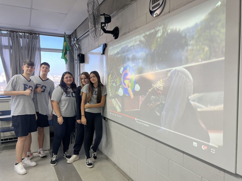 Para finalizar a atividade, os alunos apresentaram seus vídeos para os colegas de classe.