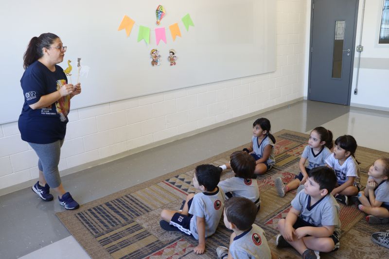 Dando continuidade às atividades, a Professora Luciana apresentou e leu para os pequenos um livro junino, a fim de enriquecer o conhecimento sobre esse tema e sobre a literatura.