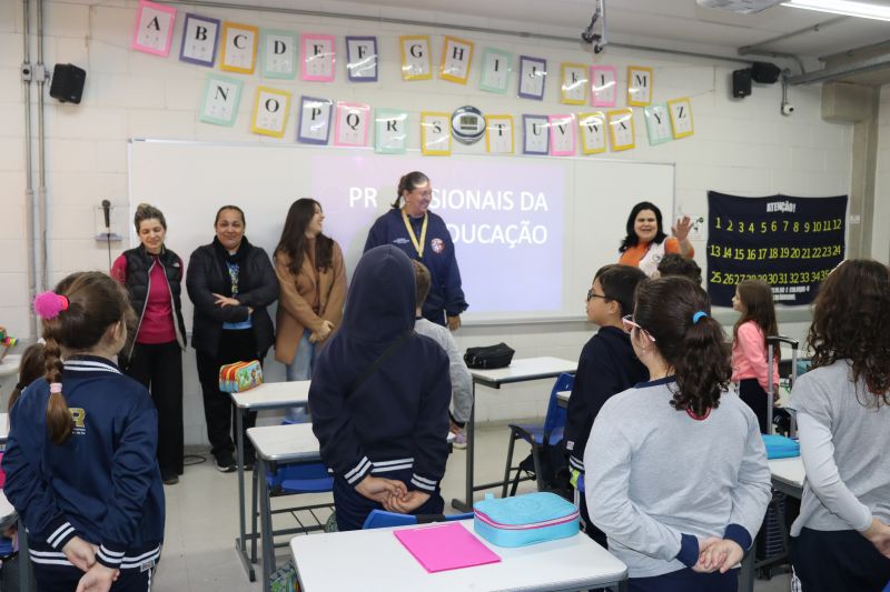 Em um momento especial, os estudantes entregaram o cartão feito com muito carinho e atenção para o profissional escolhido.