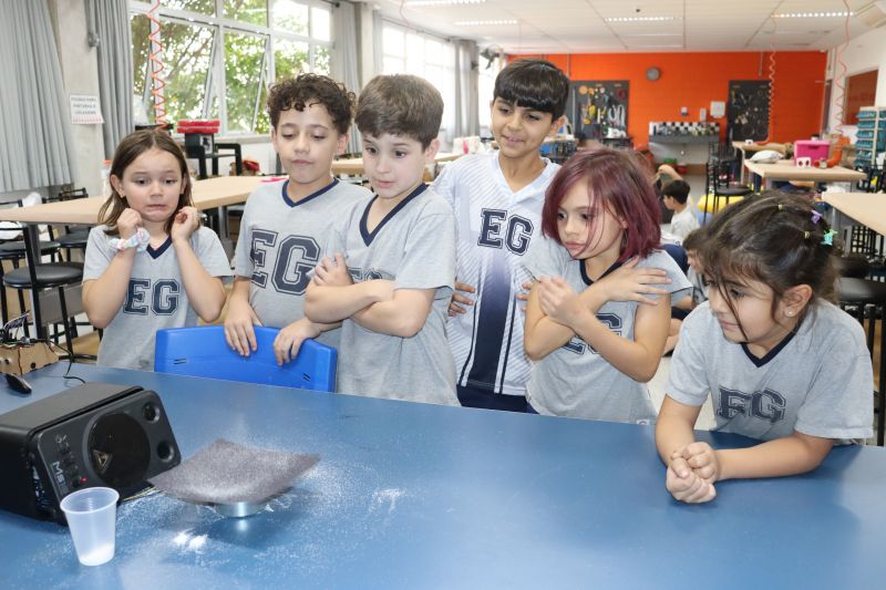Os estudantes estão aprendendo sobre o som, entendendo como ele reage em diversos tipos de meios e como é capturado por nossos ouvidos.