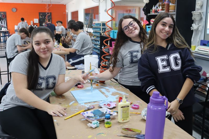 Os alunos do Itinerário de Química, da 2ª série do EM – Investigação e Análises Químicas, foram ao Espaço Maker acompanhados pelo Professor Alex, de Química, e pela Virginia (responsável pelo espaço).