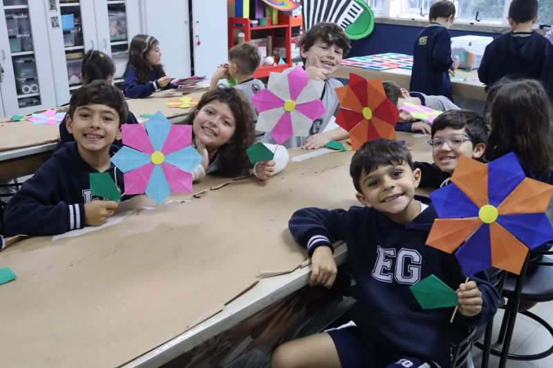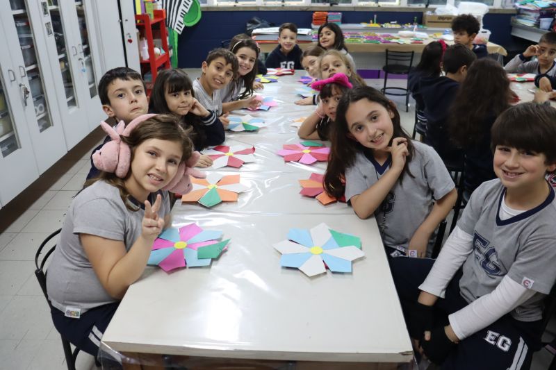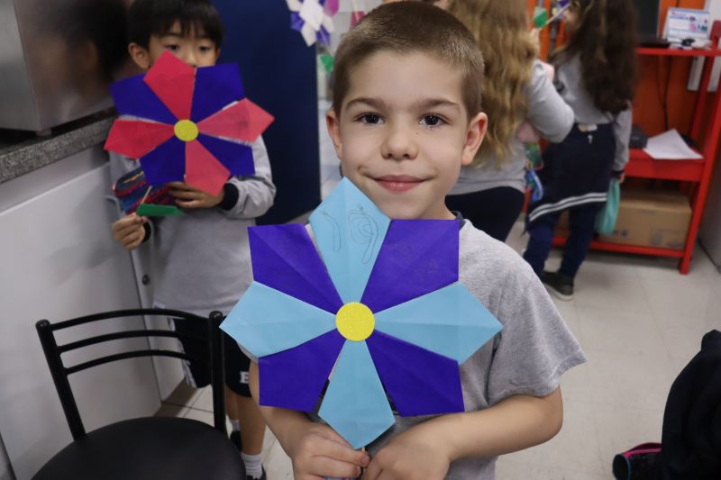 Aproveitando a chegada da primavera, a Professora Vitória, de Arte, propôs aos alunos do 1º e do 2º ano do EF uma atividade muito divertida.