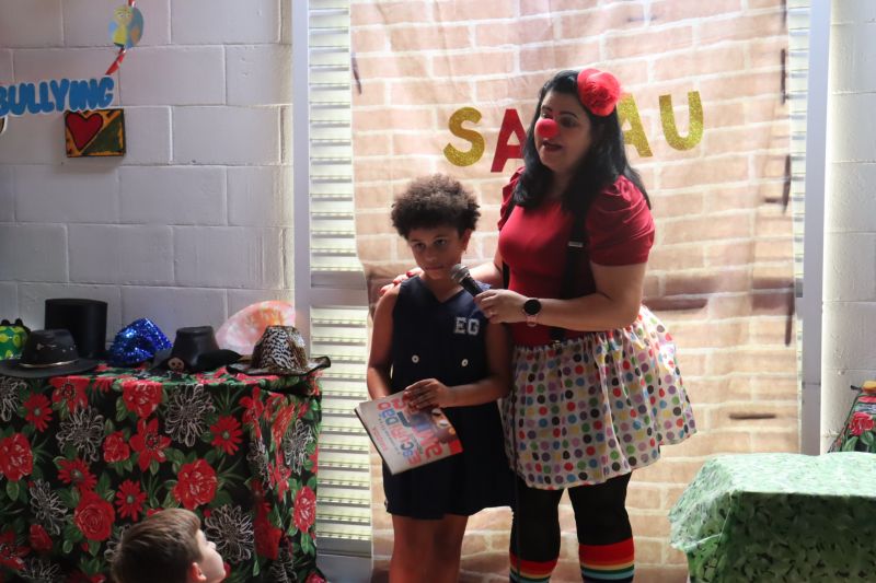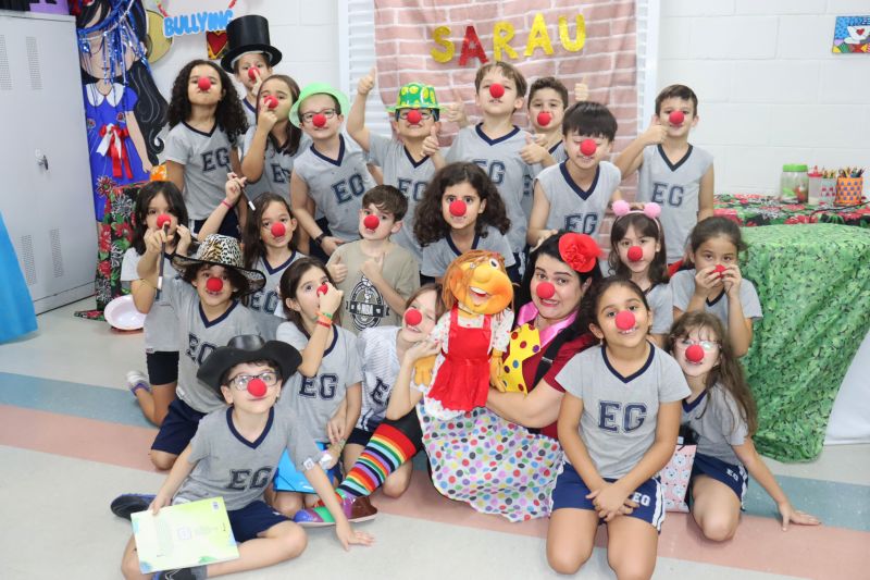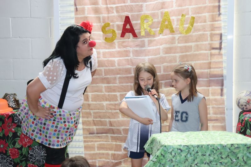 Para concluir o projeto, cada aluno preparou algo especial para apresentar para a turma, no sarau. A Palhaça Kika (um esquete da Professora Erika) conduziu as apresentações de mágicas, danças, cantorias e teatro, entre outras.