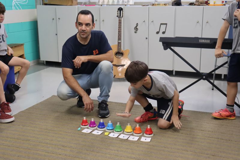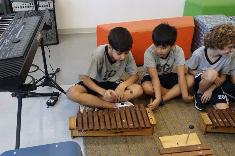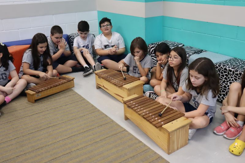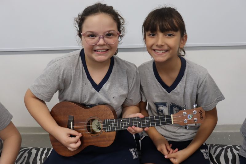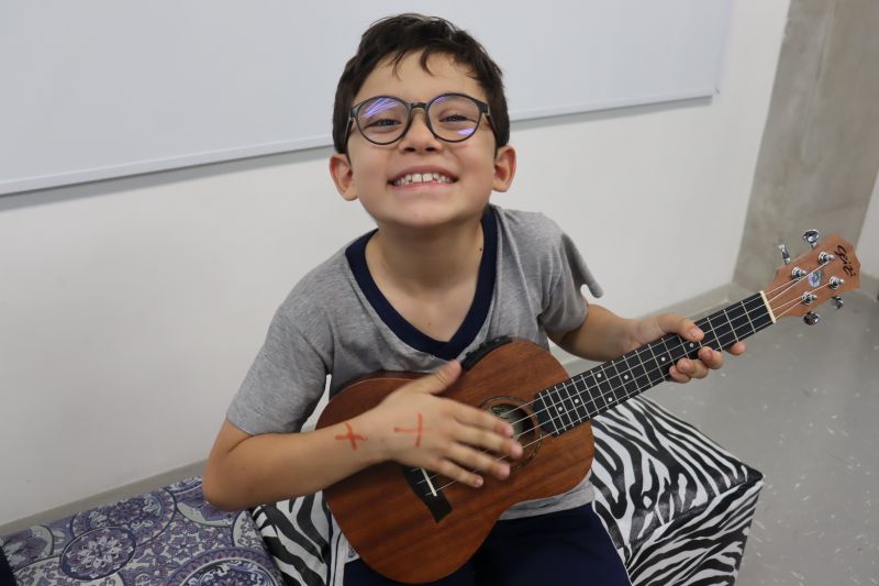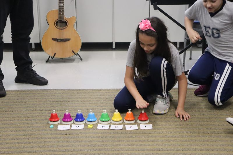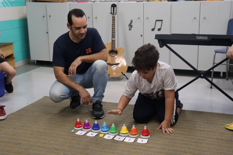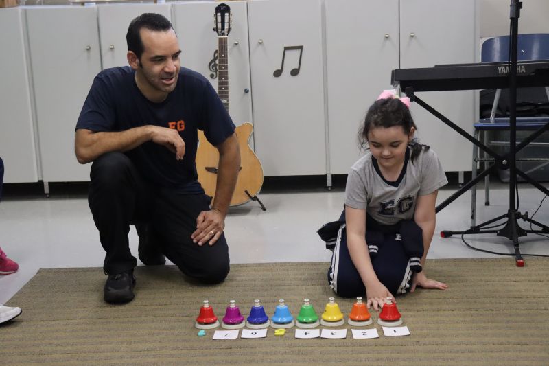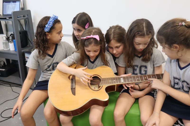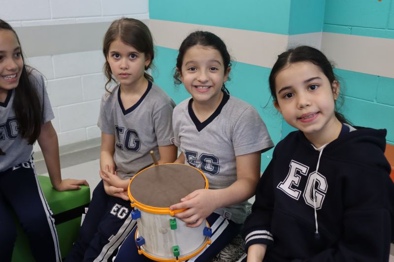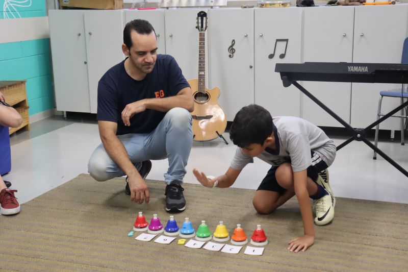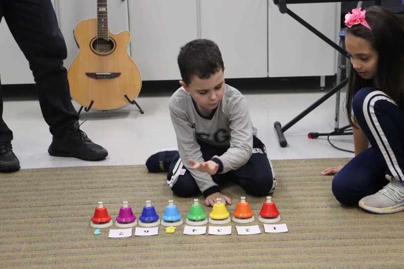Seguindo as orientações do Professor Gideon, de Música, os estudantes conheceram diversos instrumentos musicais de sopro, corda e percussão, como reco-reco, violão, guitarra, flauta doce, xilofone, chocalho e clava.