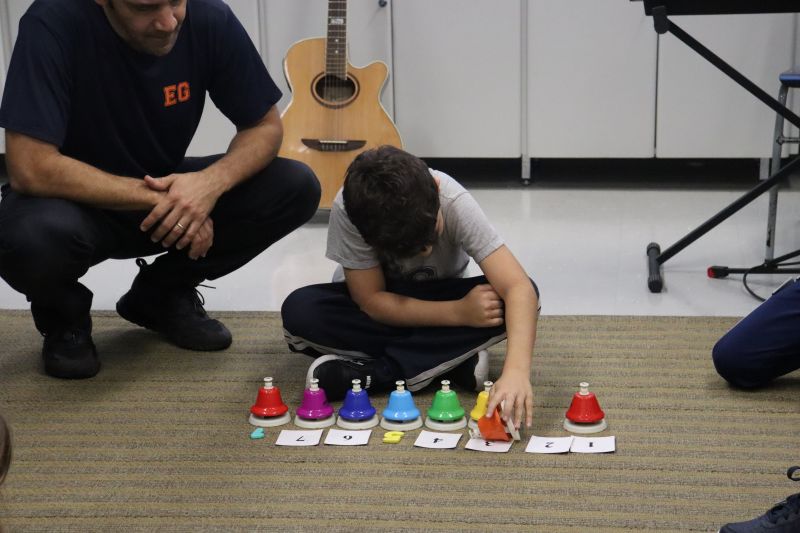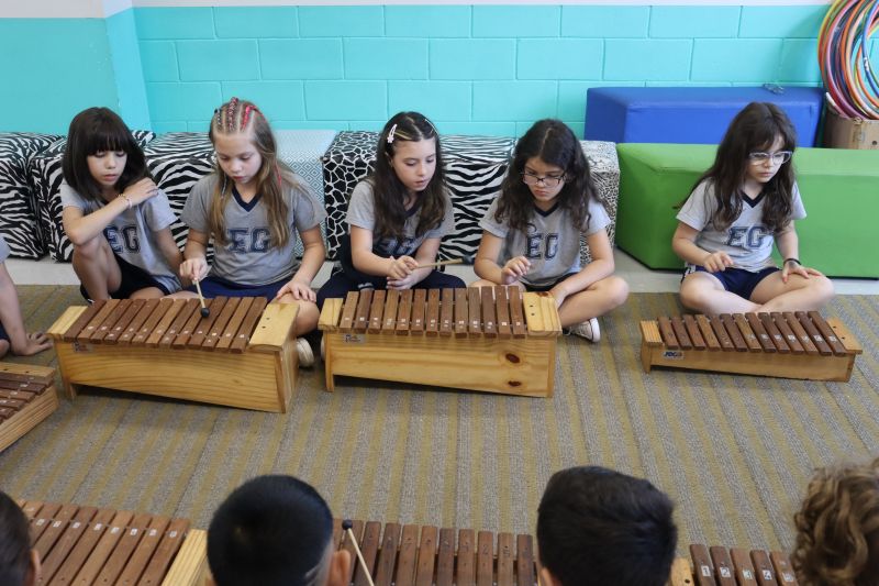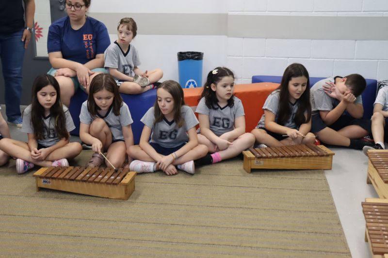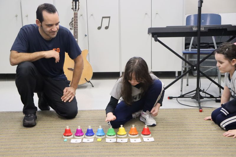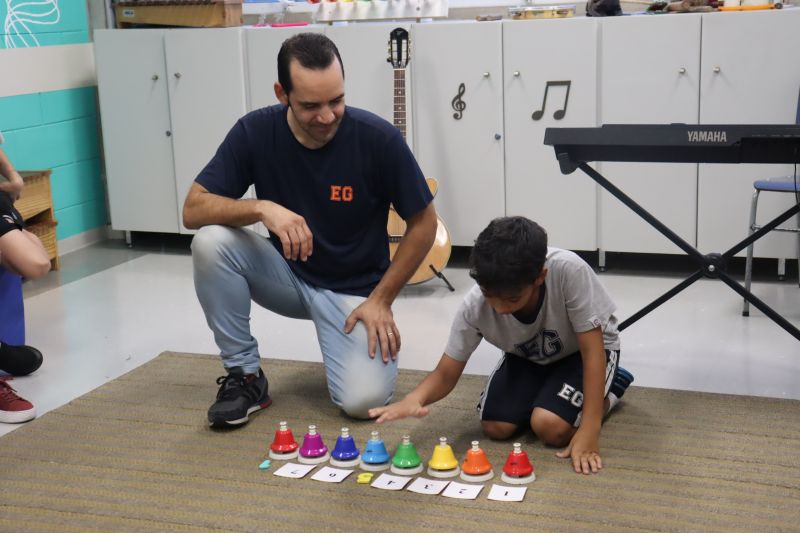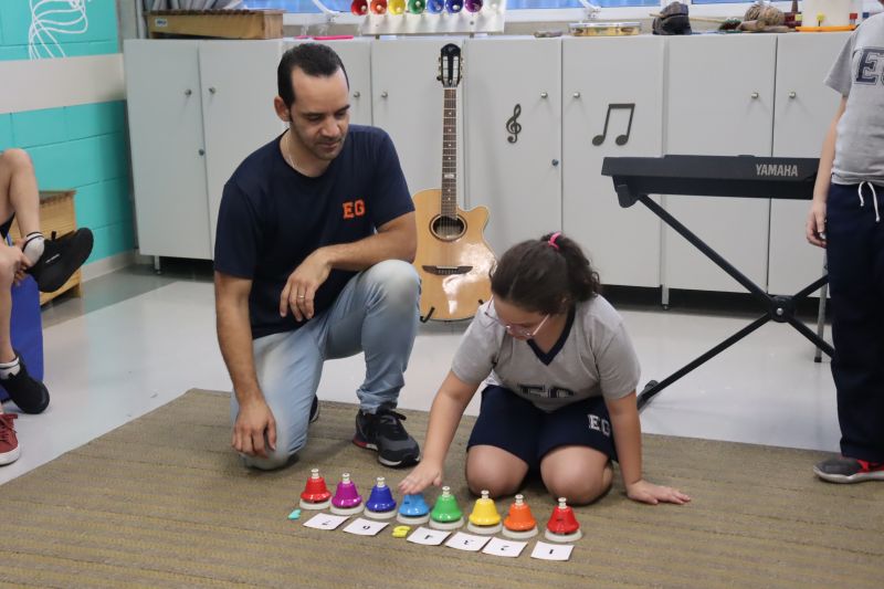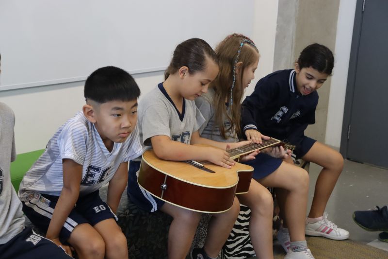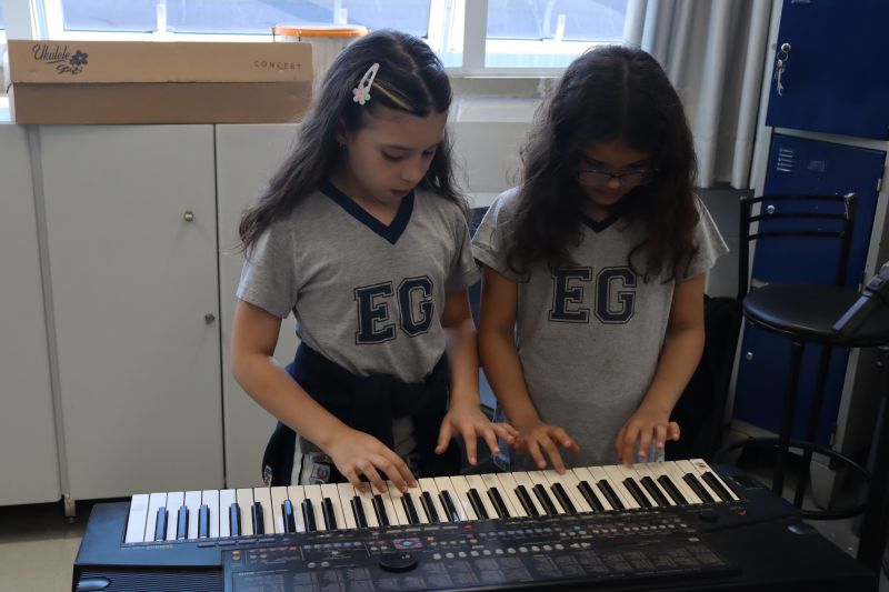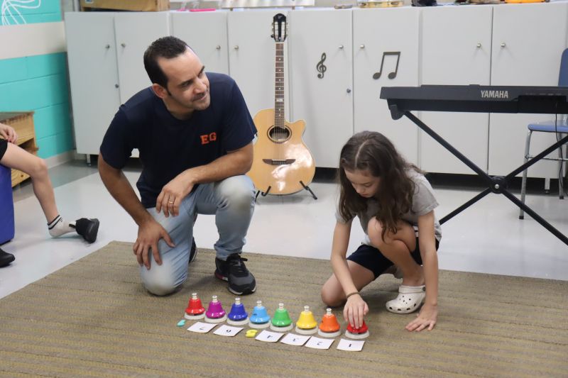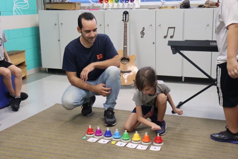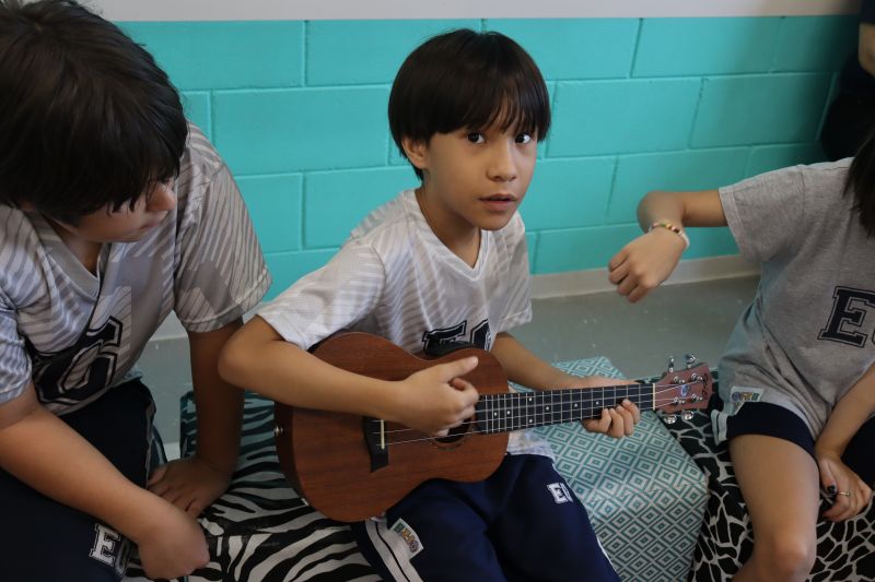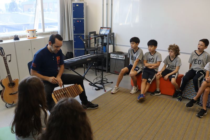 Seguindo as orientações do Professor Gideon, de Música, os estudantes conheceram diversos instrumentos musicais de sopro, corda e percussão, como reco-reco, violão, guitarra, flauta doce, xilofone, chocalho e clava.