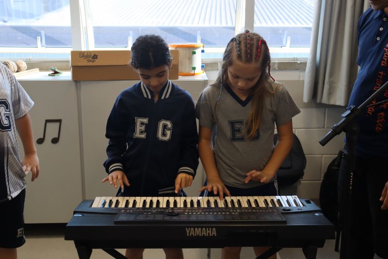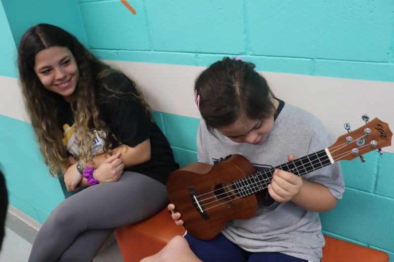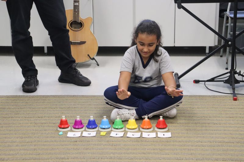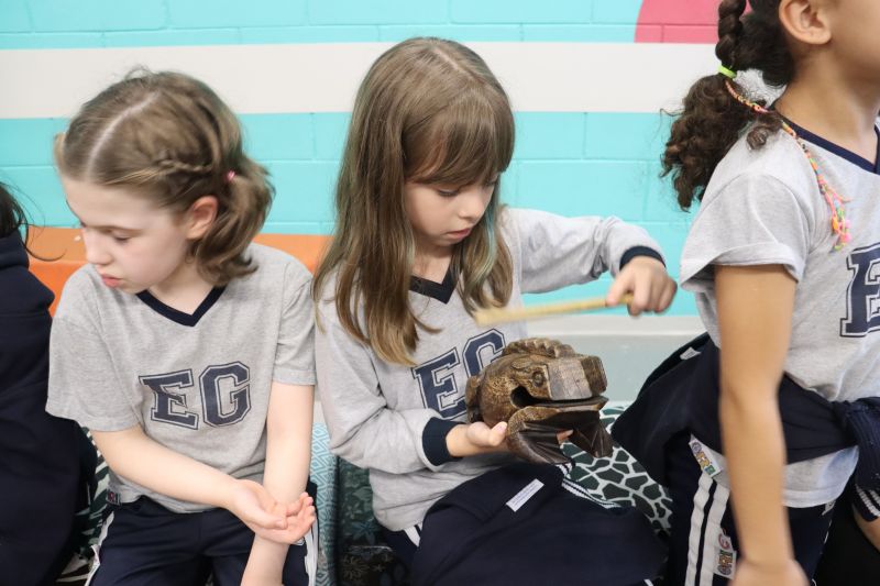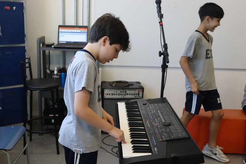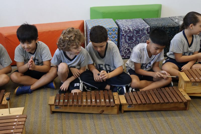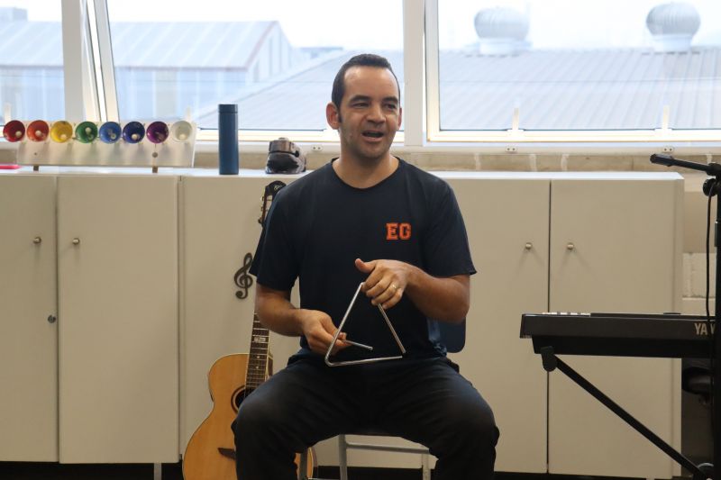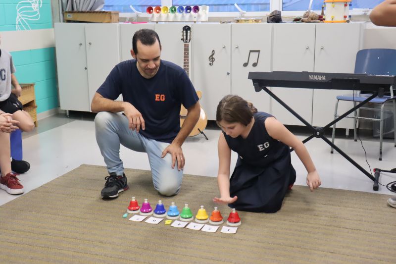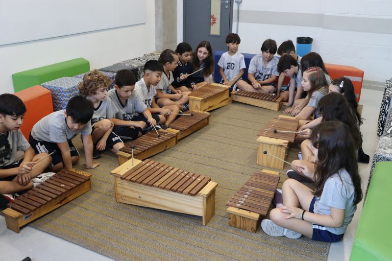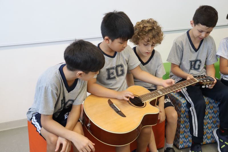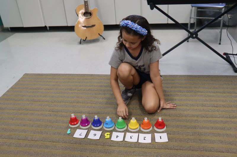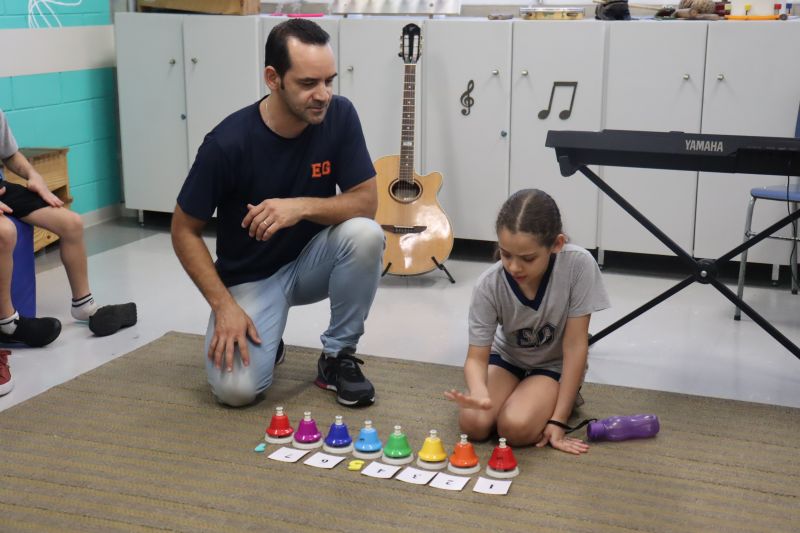 Seguindo as orientações do Professor Gideon, de Música, os estudantes conheceram diversos instrumentos musicais de sopro, corda e percussão, como reco-reco, violão, guitarra, flauta doce, xilofone, chocalho e clava.