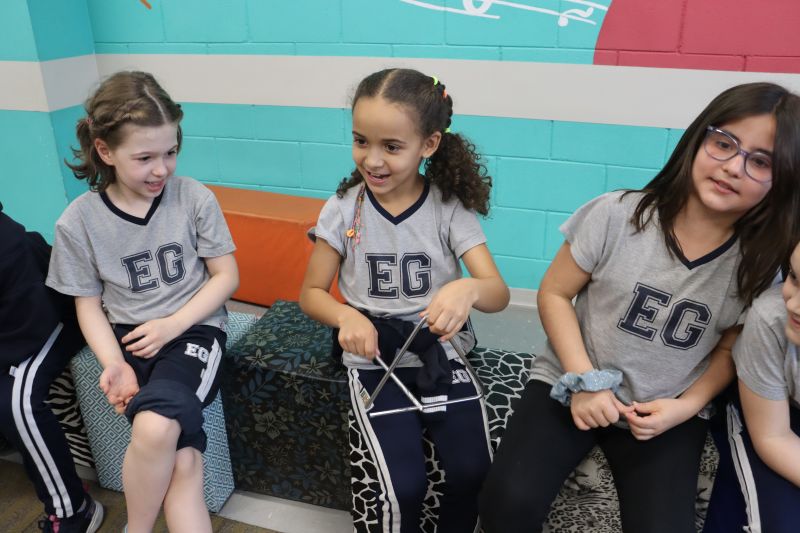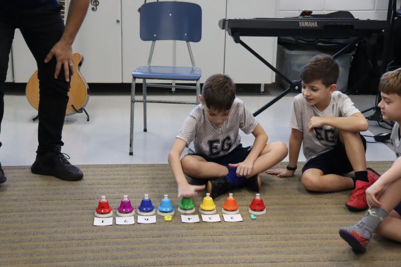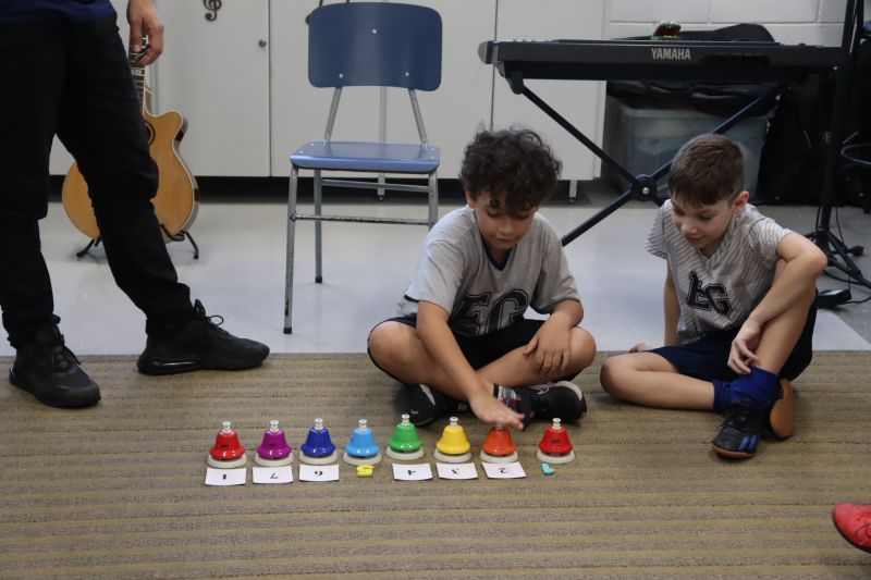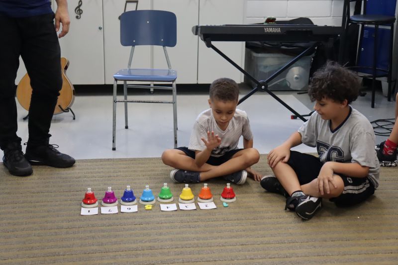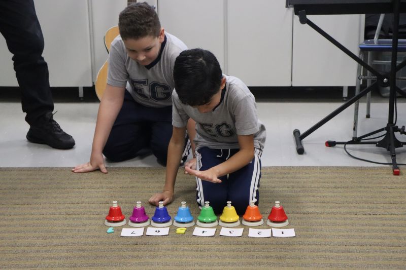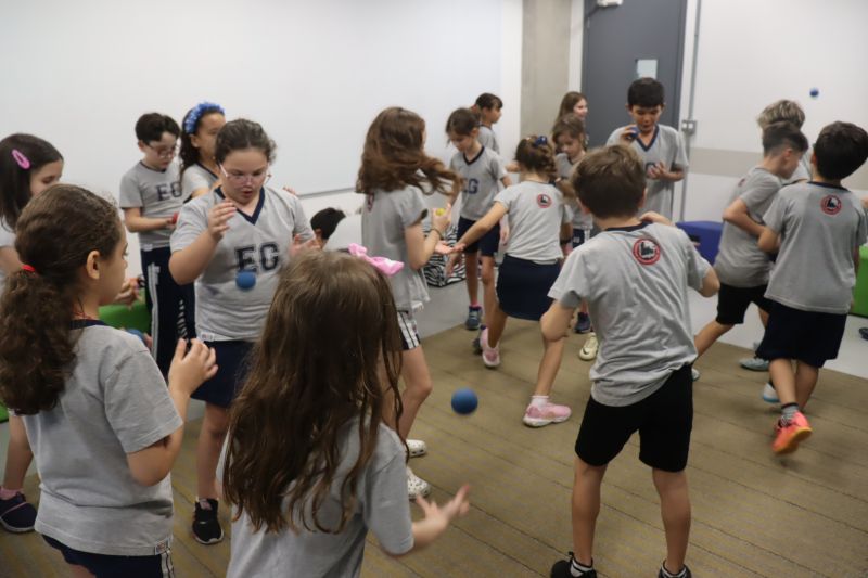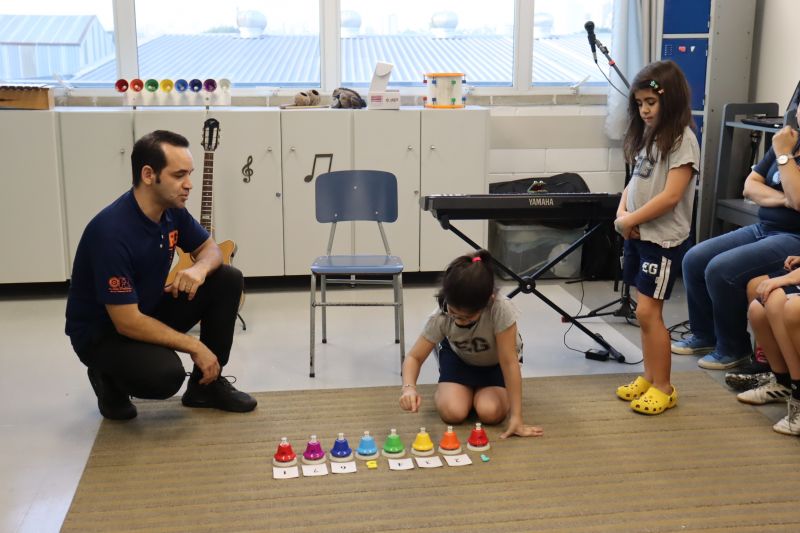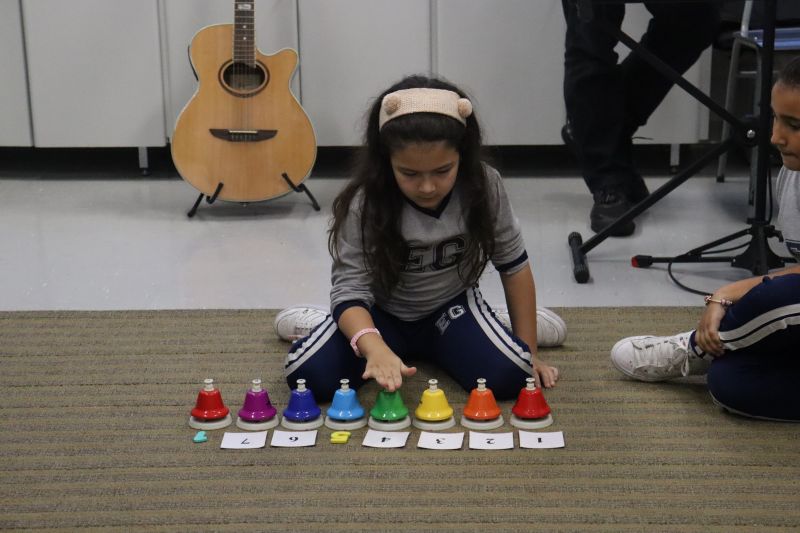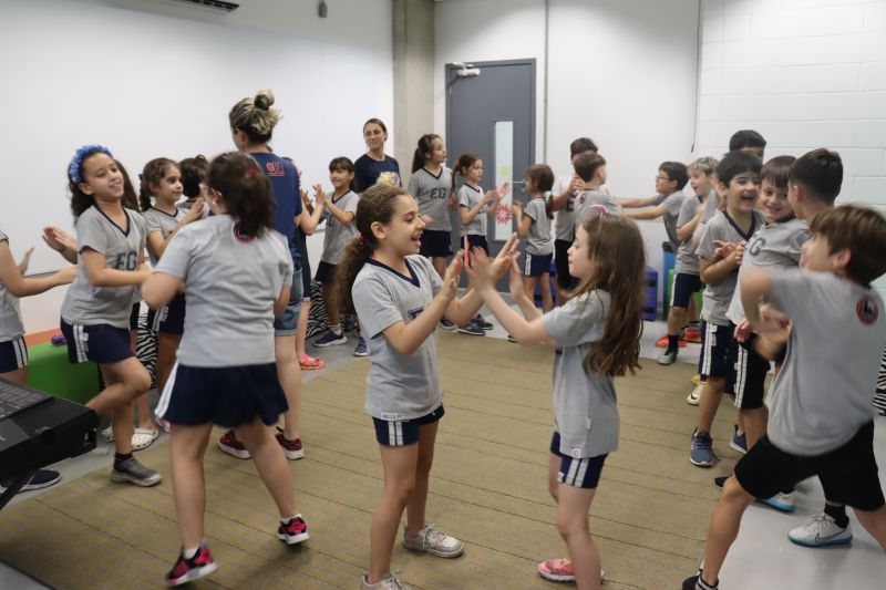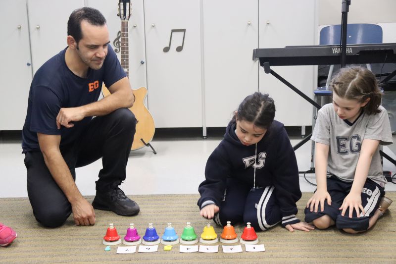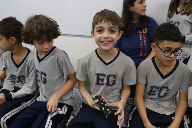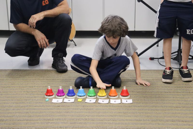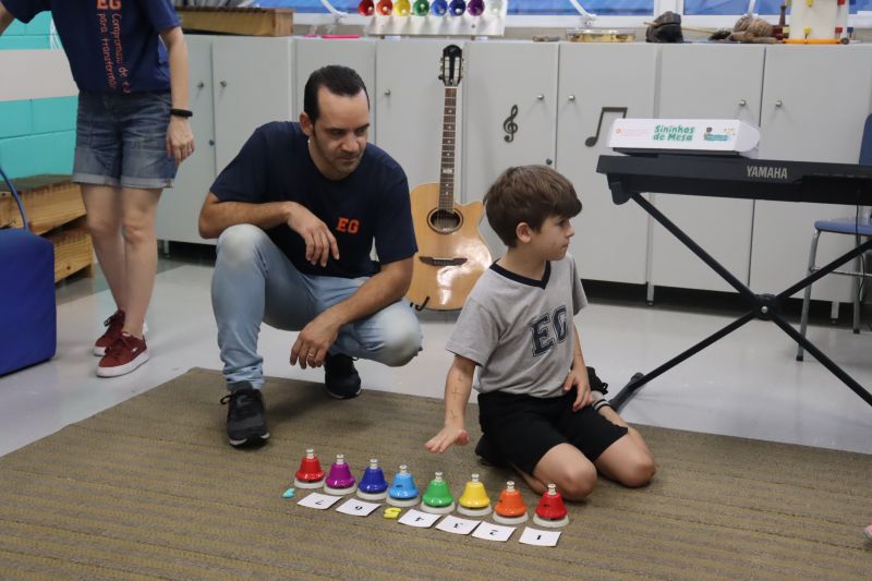 Acompanhados pelas Professoras Tatiana, Gina, Letícia, Paula e Cida, os alunos do 3º ano do EF foram à sala de musicalização.