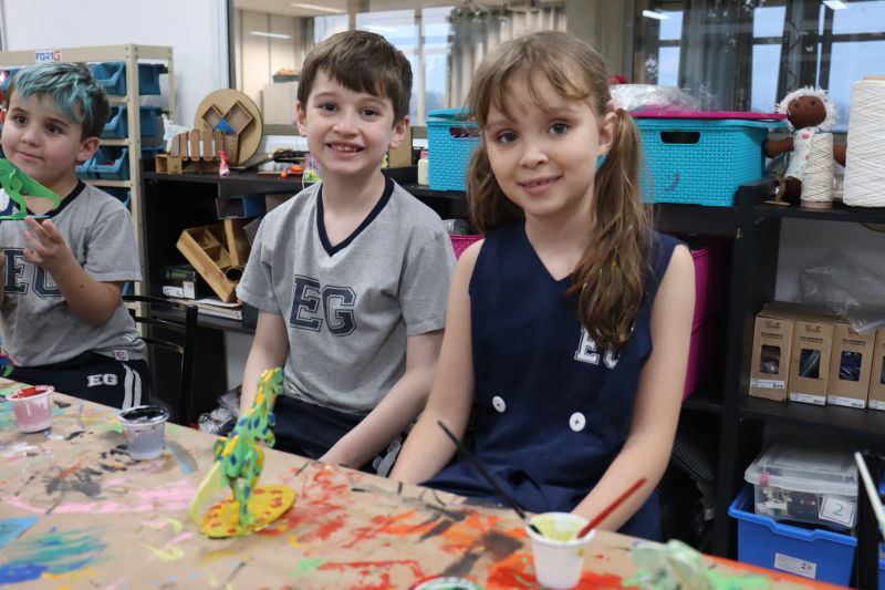 Em seguida, os estudantes montaram e pintaram seus dinos.