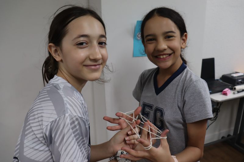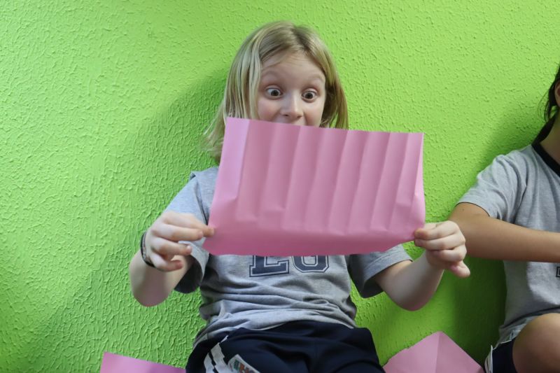 Os jogos que entretiveram as crianças foram: amarelinha, cama-de-gato, origami e terra-mar.