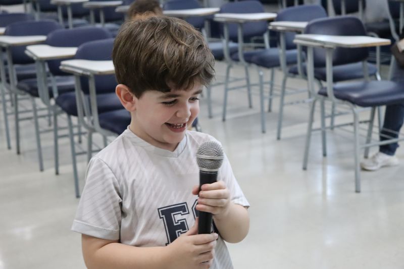 Os estudantes do Nível 1 da Educação Infantil, orientados pela professora Luciana, entrevistaram Wellington, funcionário da portaria do colégio. Foi um momento muito divertido, durante o qual as crianças fizeram perguntas sobre a família dele, seus momentos de lazer, suas preferências culinárias, entre outros assuntos.