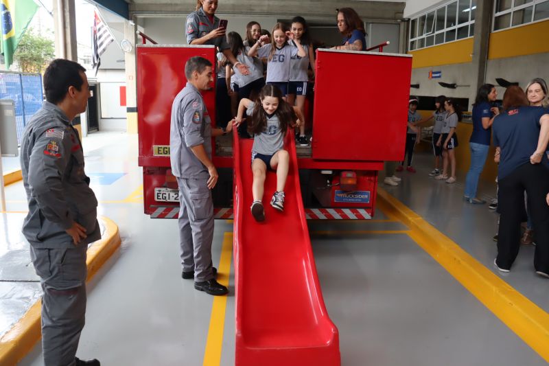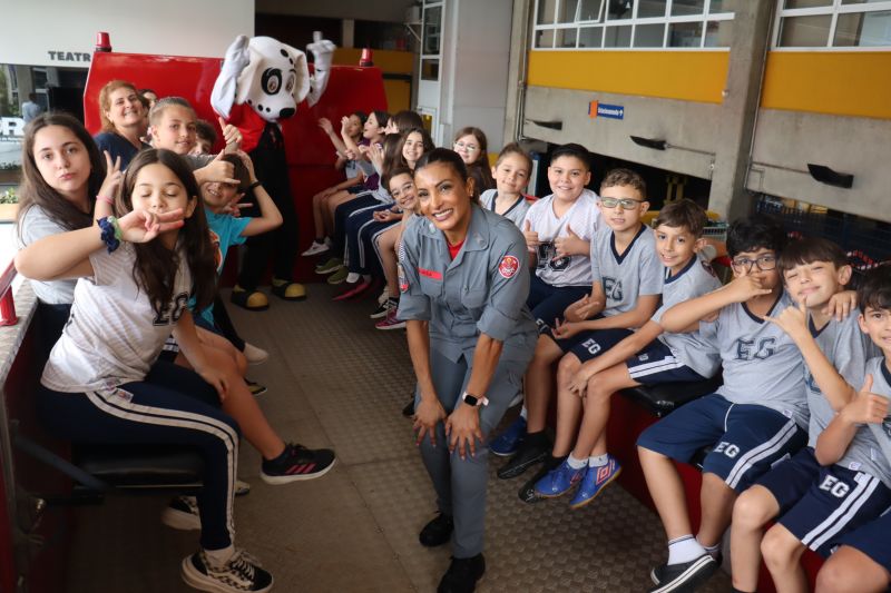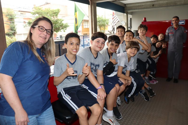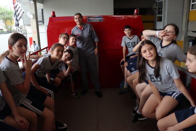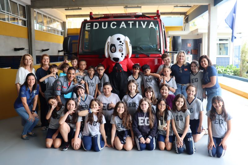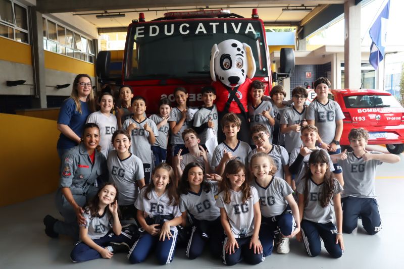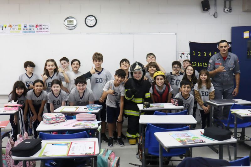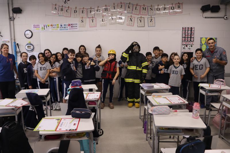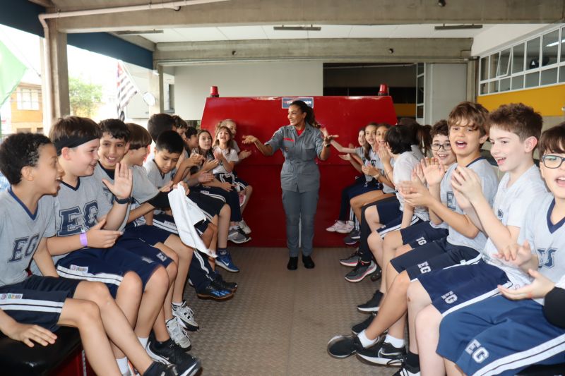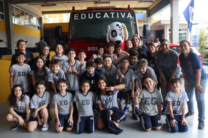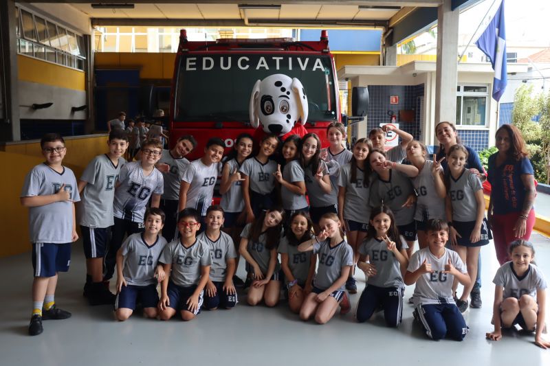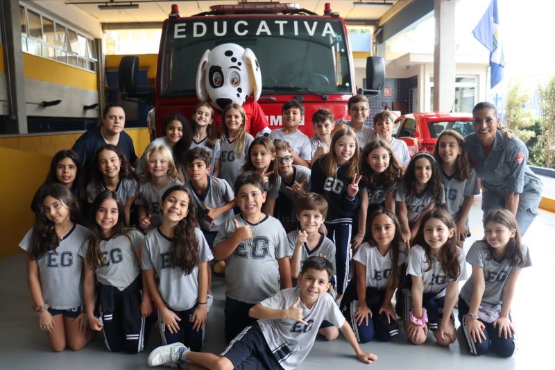 Acompanhados pelas Professoras Adriana, Daniele e Fernanda, os alunos do 4º ano do EF tiveram uma experiência única e enriquecedora com a presença do Corpo de Bombeiros de São Caetano do Sul no EG.