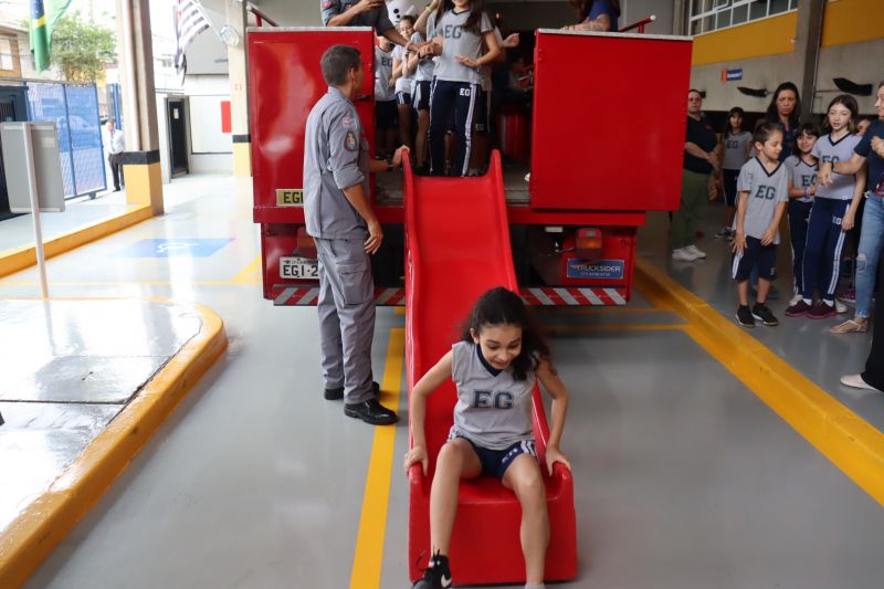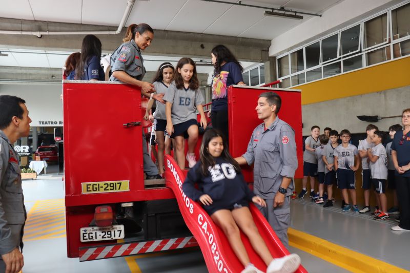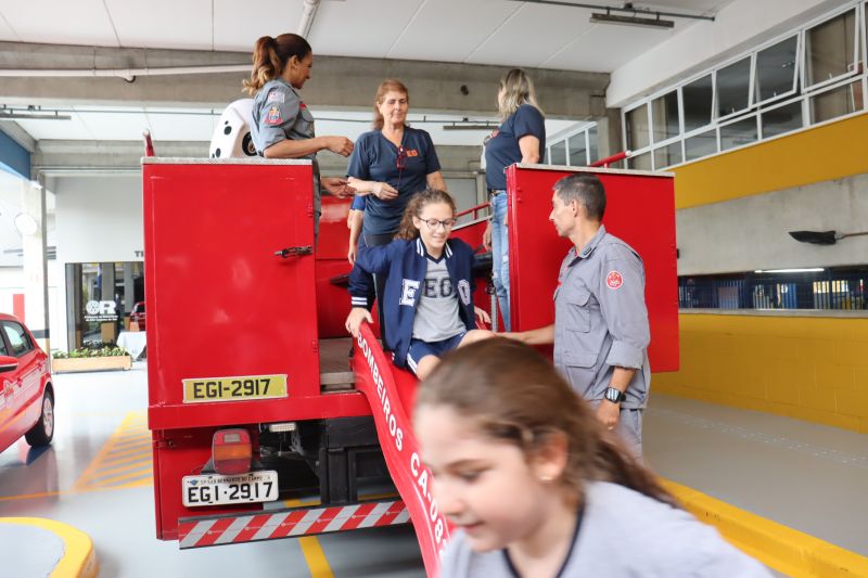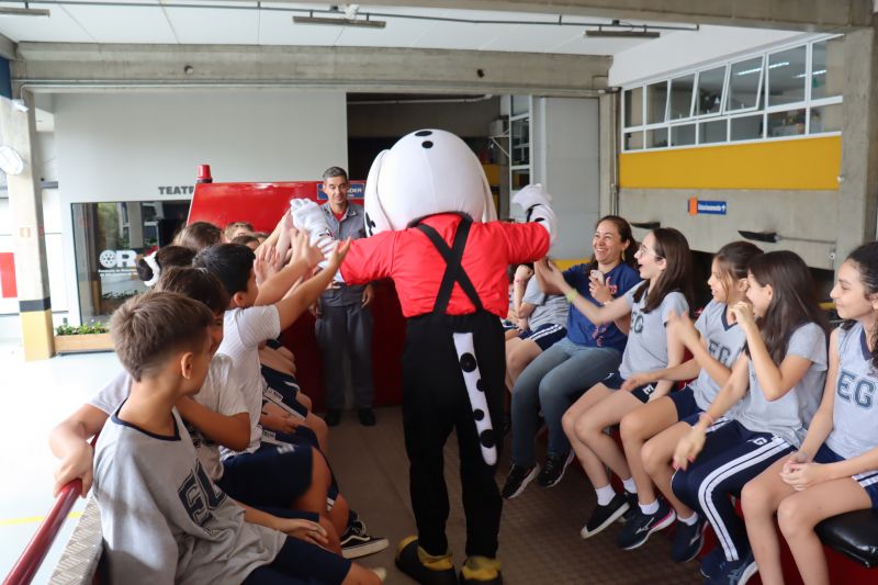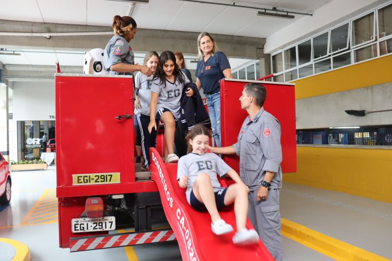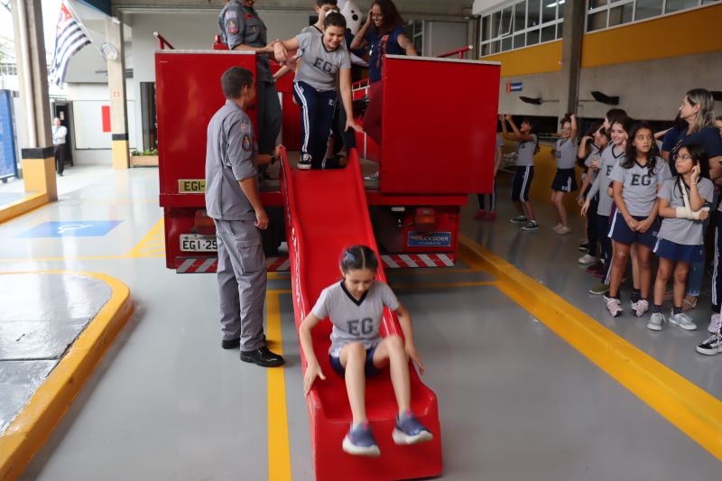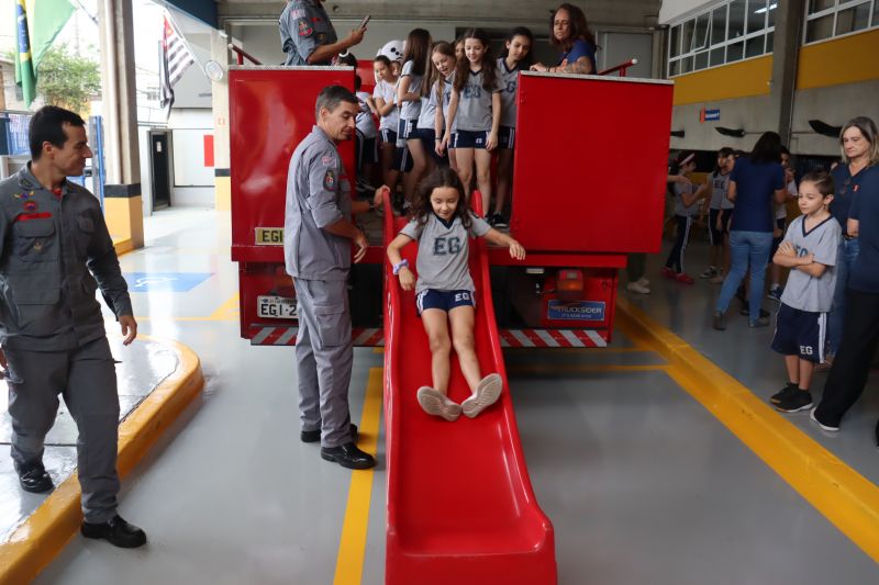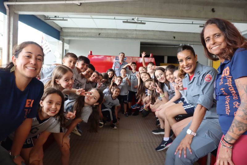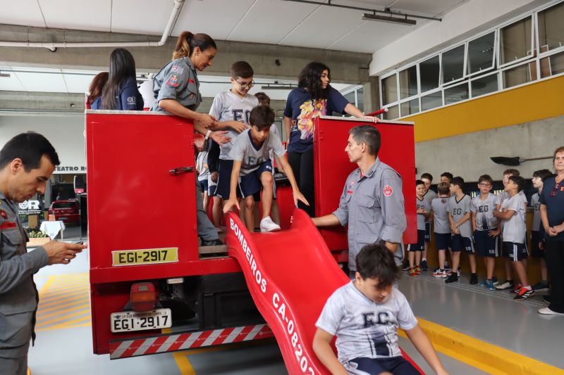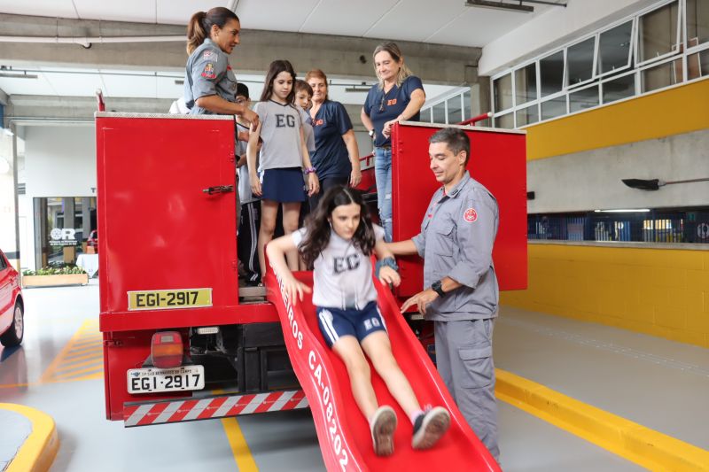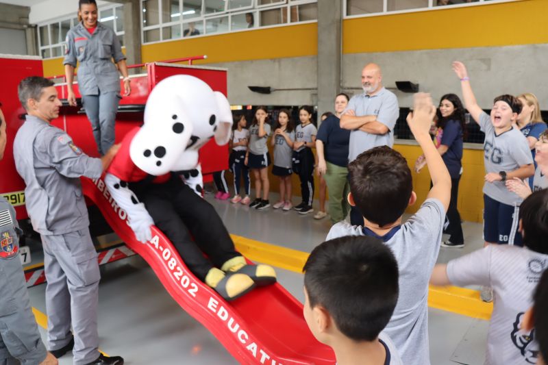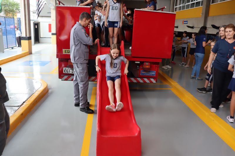Acompanhados pelas Professoras Adriana, Daniele e Fernanda, os alunos do 4º ano do EF tiveram uma experiência única e enriquecedora com a presença do Corpo de Bombeiros de São Caetano do Sul no EG.