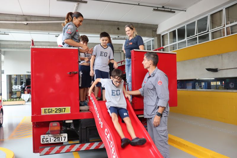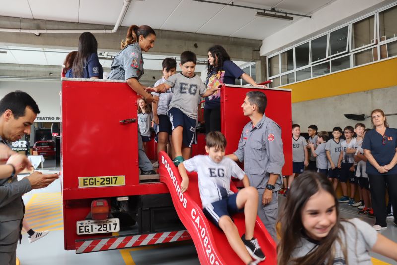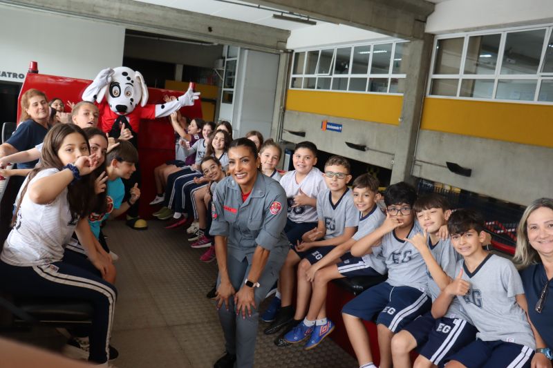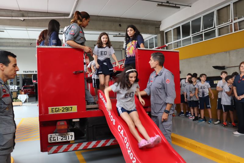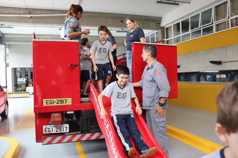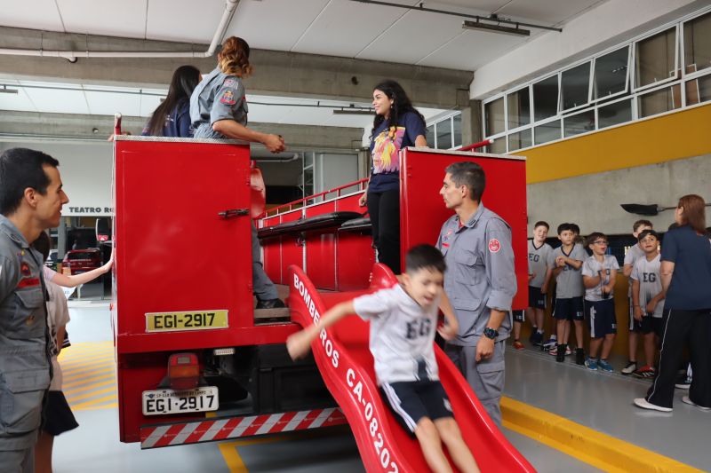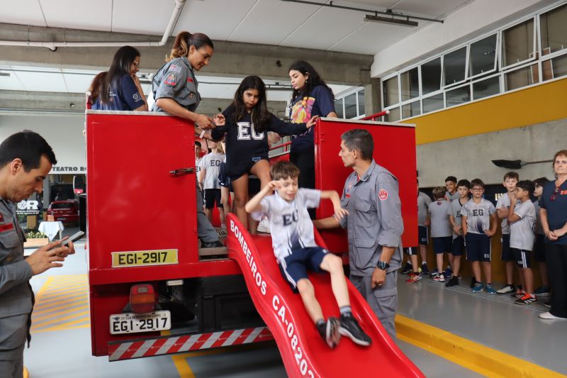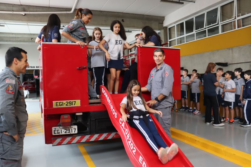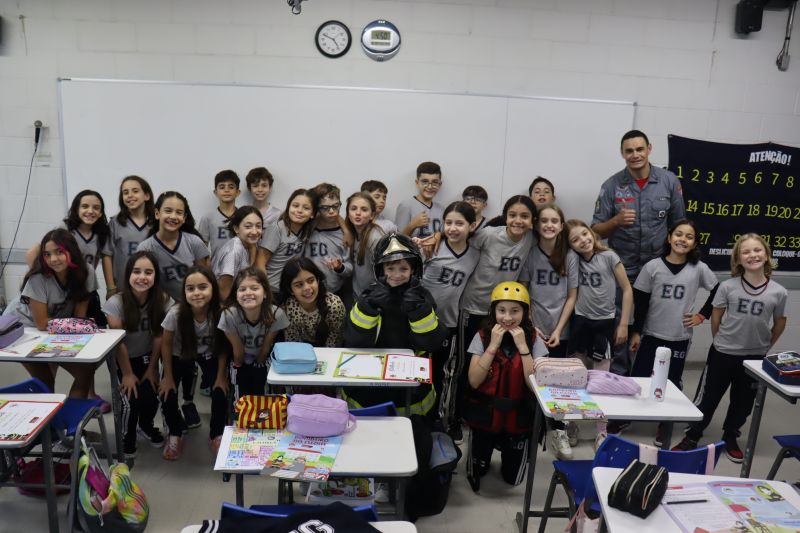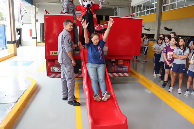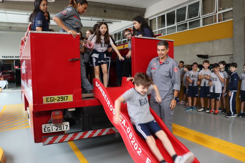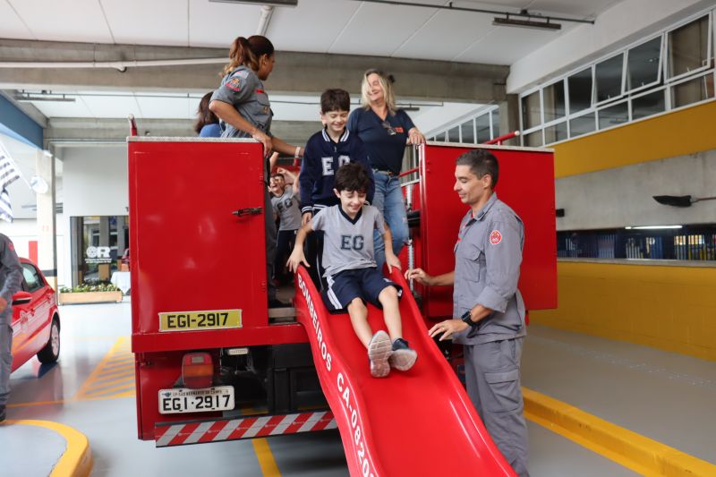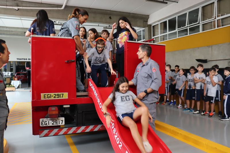 Acompanhados pelas Professoras Adriana, Daniele e Fernanda, os alunos do 4º ano do EF tiveram uma experiência única e enriquecedora com a presença do Corpo de Bombeiros de São Caetano do Sul no EG.