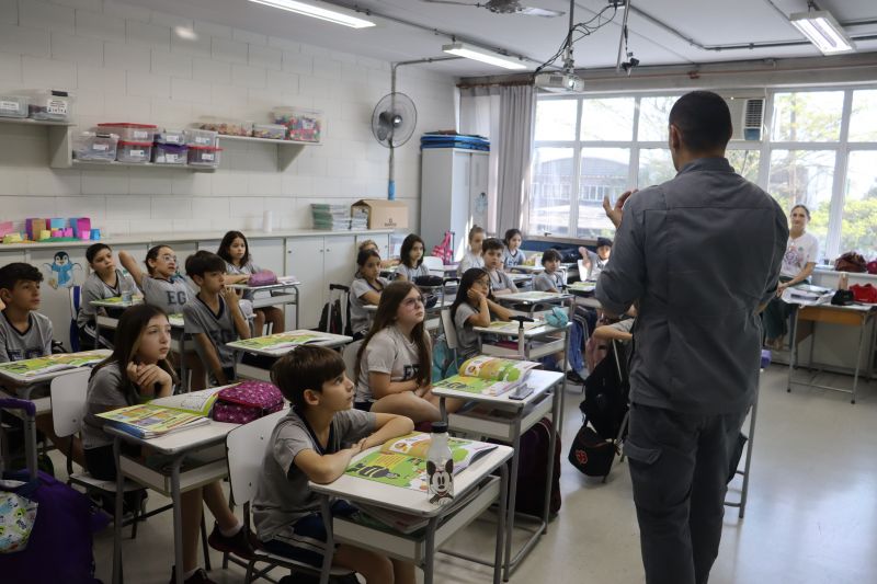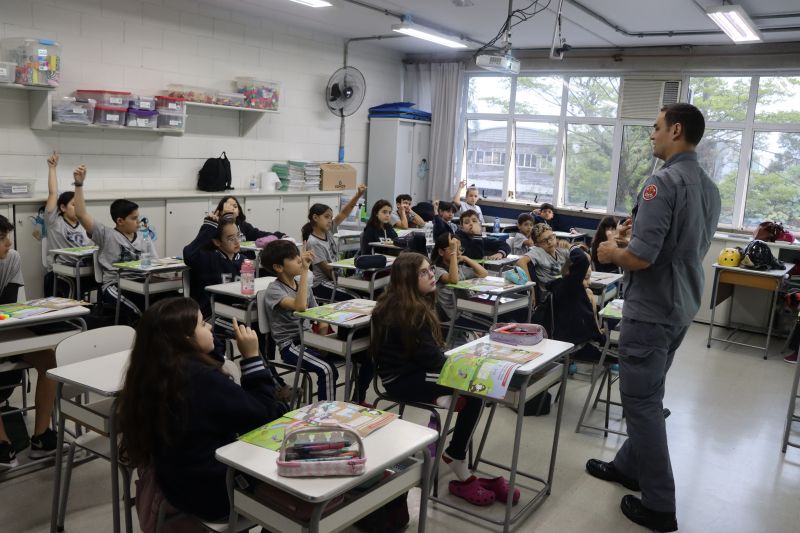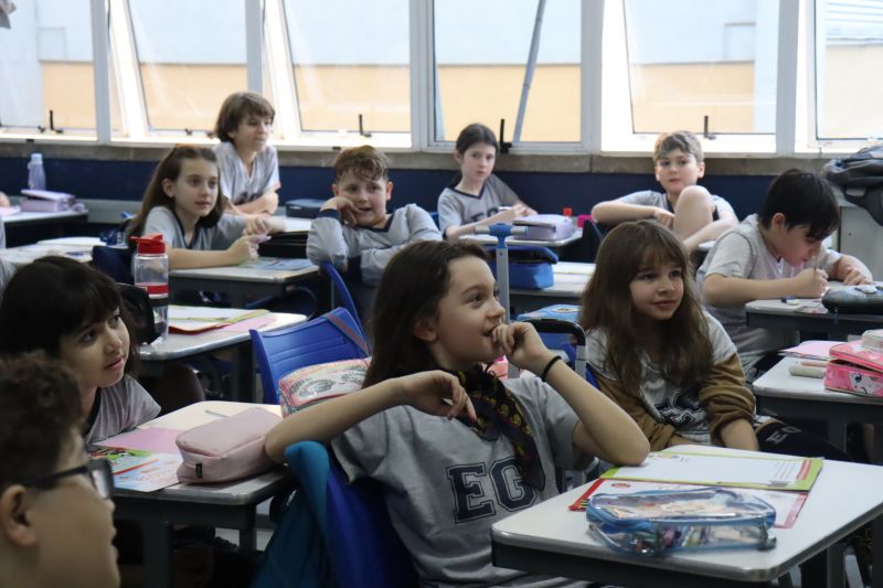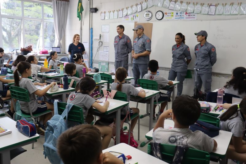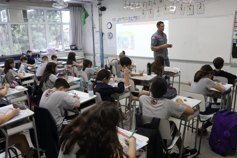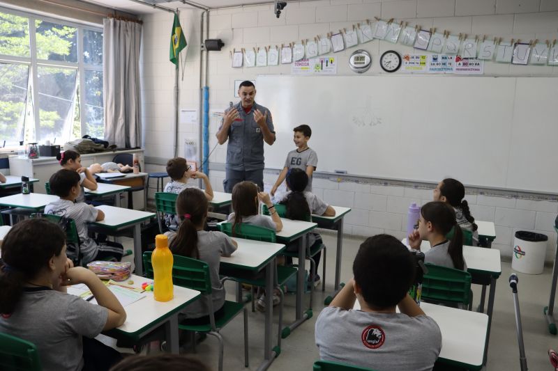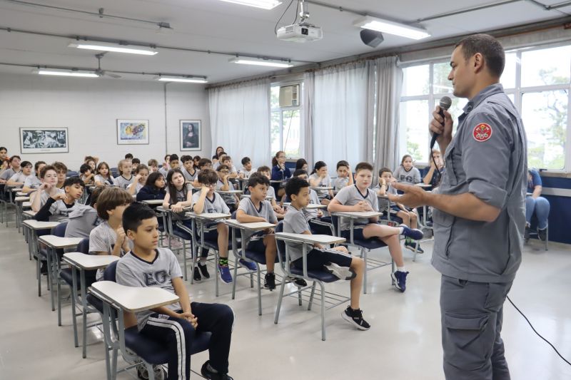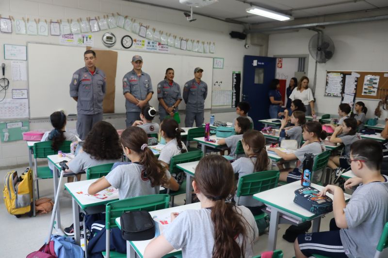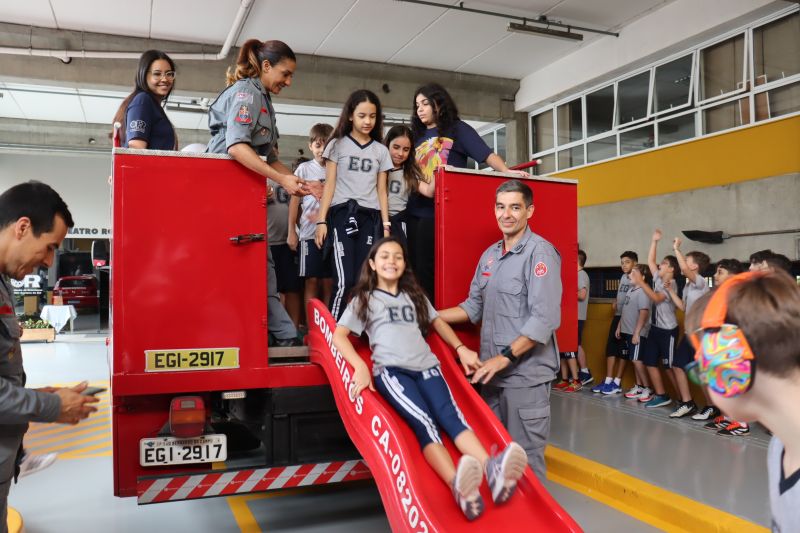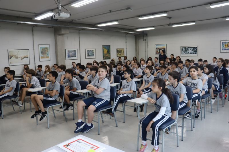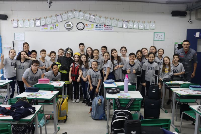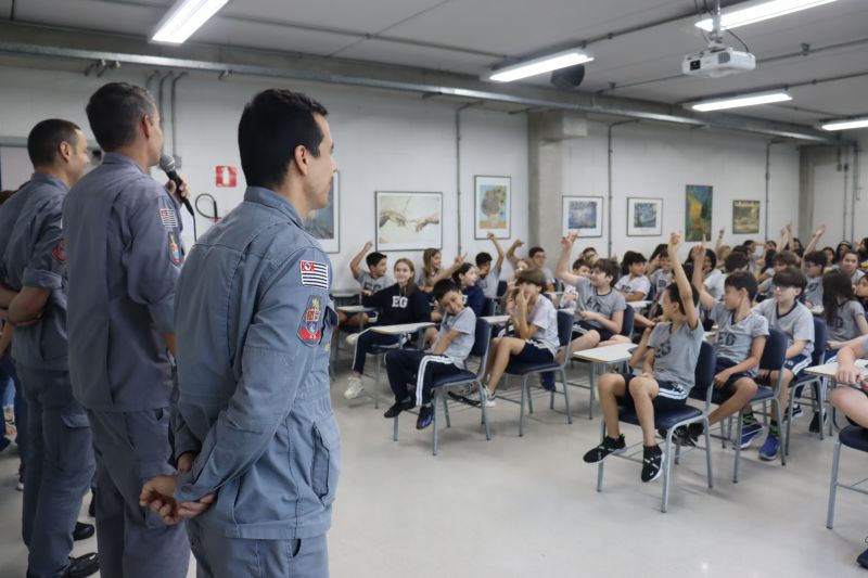 Acompanhados pelas Professoras Adriana, Daniele e Fernanda, os alunos do 4º ano do EF tiveram uma experiência única e enriquecedora com a presença do Corpo de Bombeiros de São Caetano do Sul no EG.