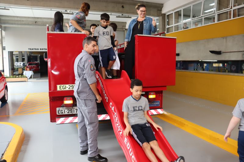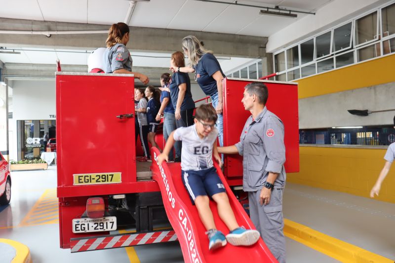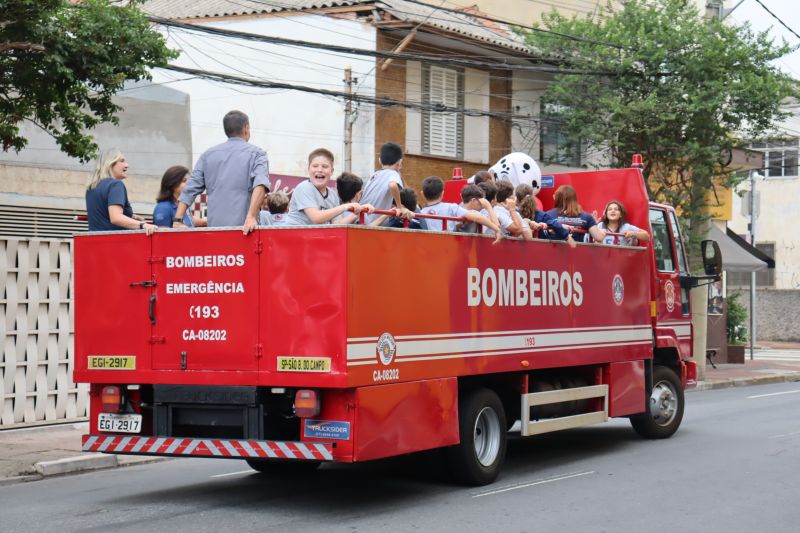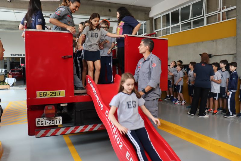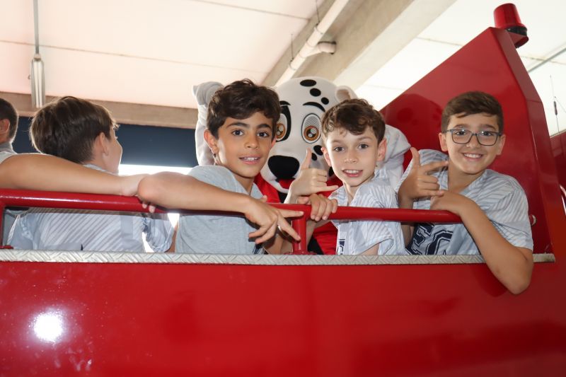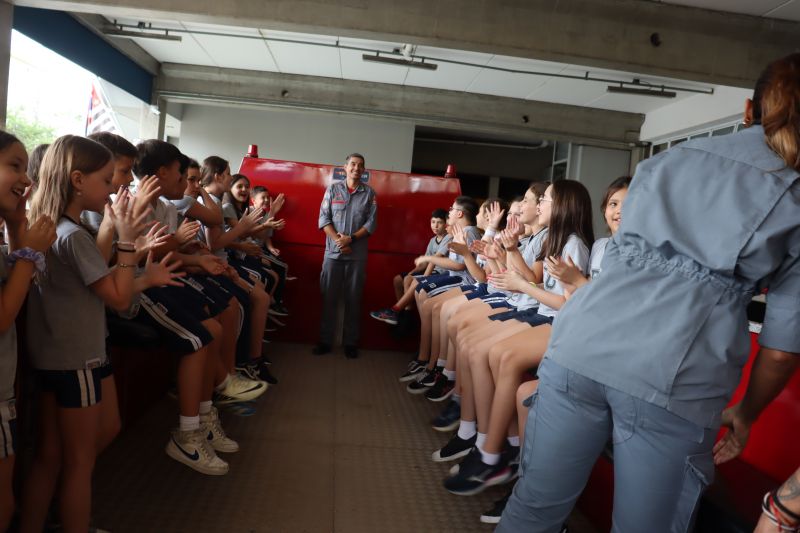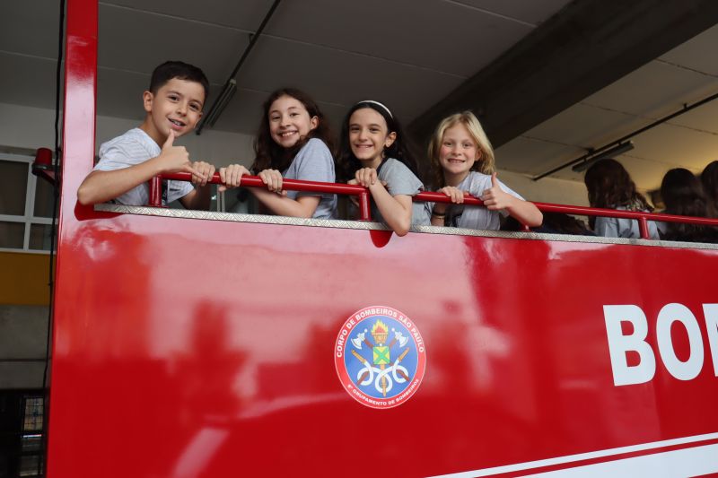 A atividade foi concluÃda com uma visita especial liderada pelo Capitão Harrison e outros bombeiros. Após interagirem, eles proporcionaram aos alunos uma volta como o carro de bombeiros pelo quarteirão do Colégio, gerando muito entusiasmo em todos.