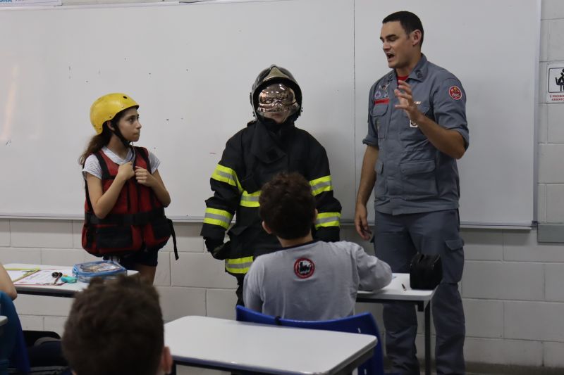 Esse projeto contou com palestras e práticas orientadas pelo instrutor Geanio, que abordou temas importantes como prevenção de incêndios, maneiras seguras de evitar o fogo e como agir em situações de incêndios domésticos. Além disso, alguns estudantes tiveram a oportunidade de vestir o uniforme dos bombeiros, vivenciando de maneira lúdica o dia a dia desses profissionais.