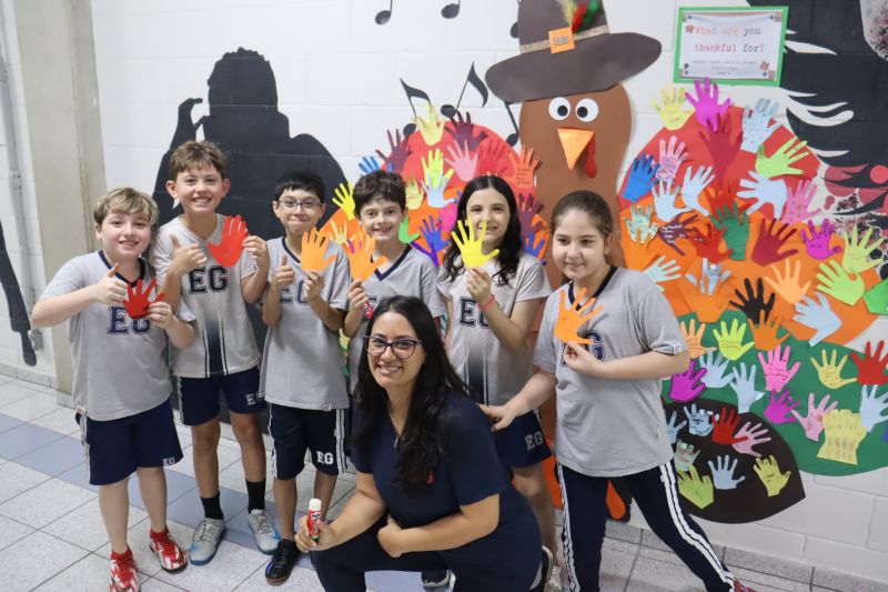 Seguindo as orientações das Teachers Gabrielle, Roberta, Michele, Amanda e Rosa, de Inglês, os alunos da Educação Infantil ao 5º ano EF realizaram uma atividade muito divertida em comemoração ao Thanksgiving (Ação de Graças).