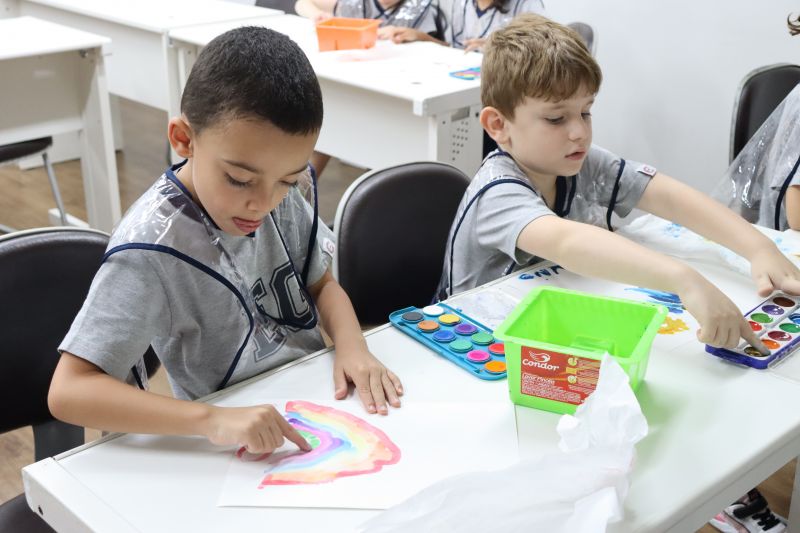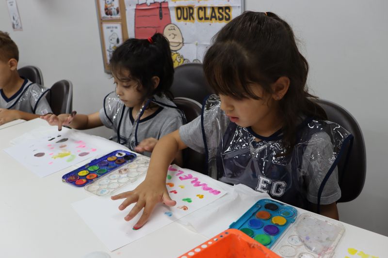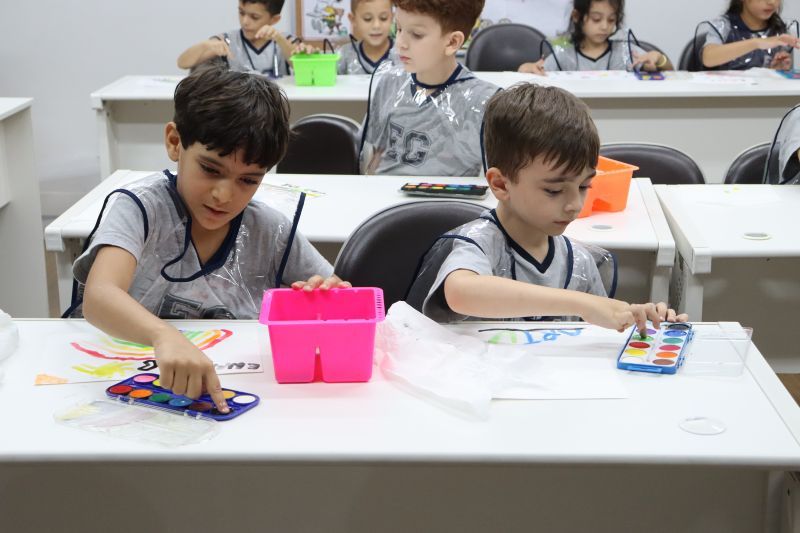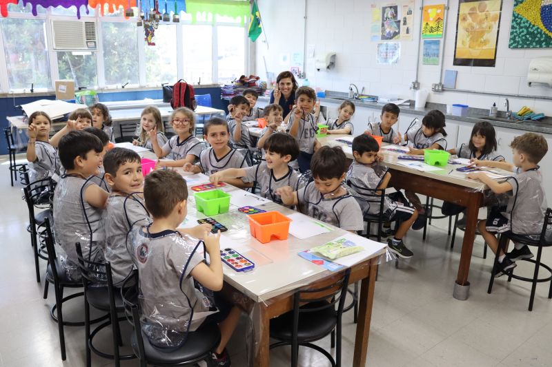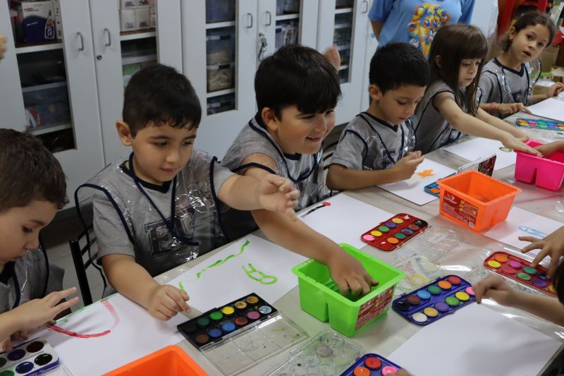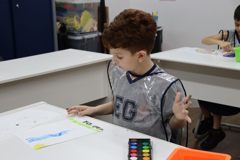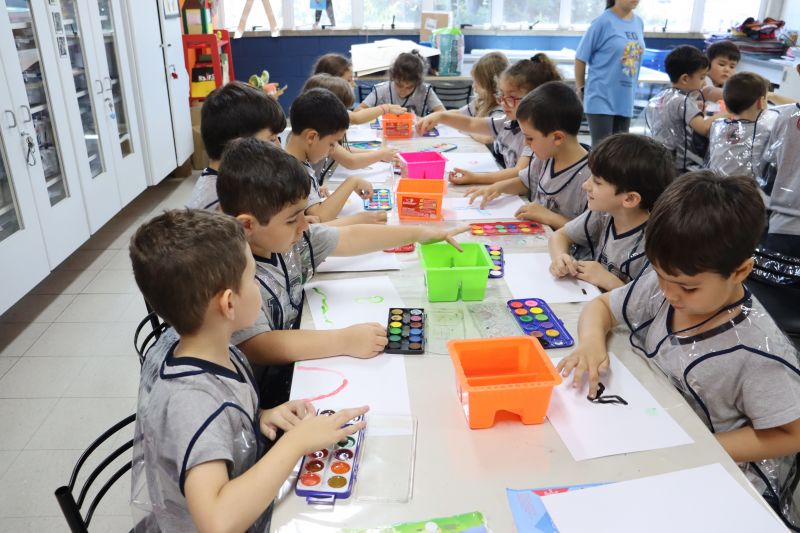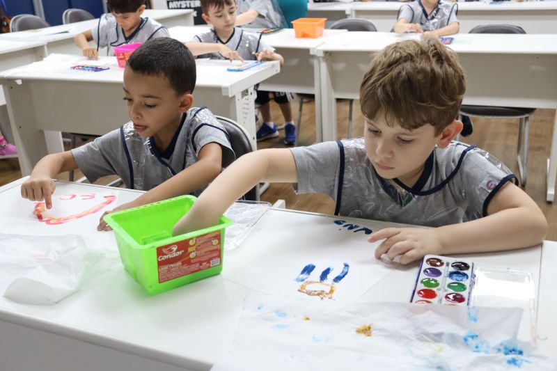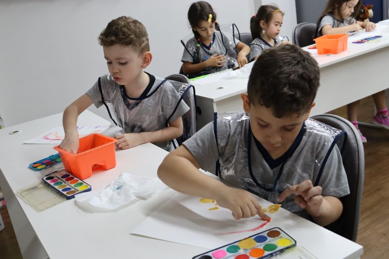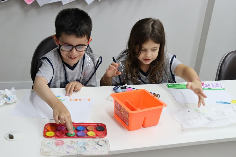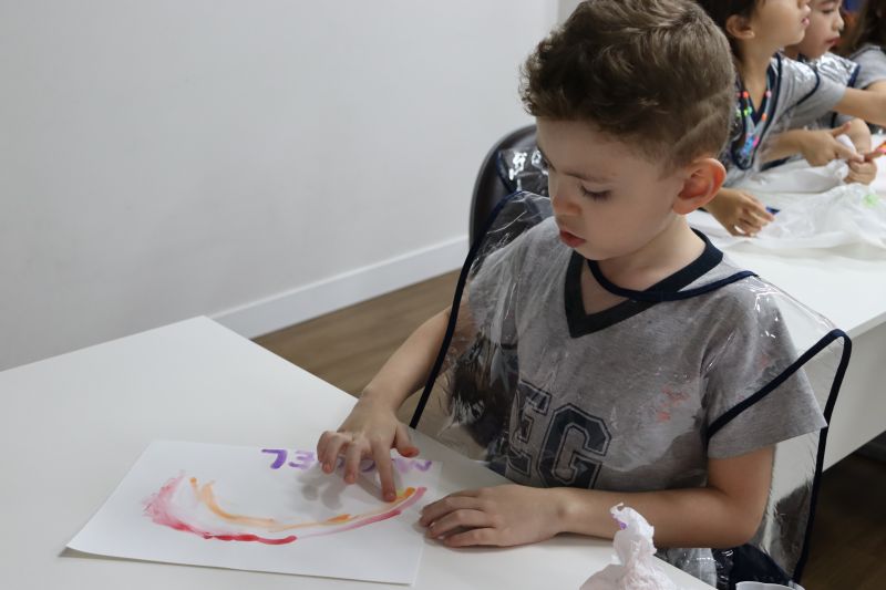 Nossos pequenos estudantes do 1º ano do Ensino Fundamental exploraram a criatividade com a Teacher Roberta. Com os dedos e tintas coloridas, eles fizeram pintura em papel.