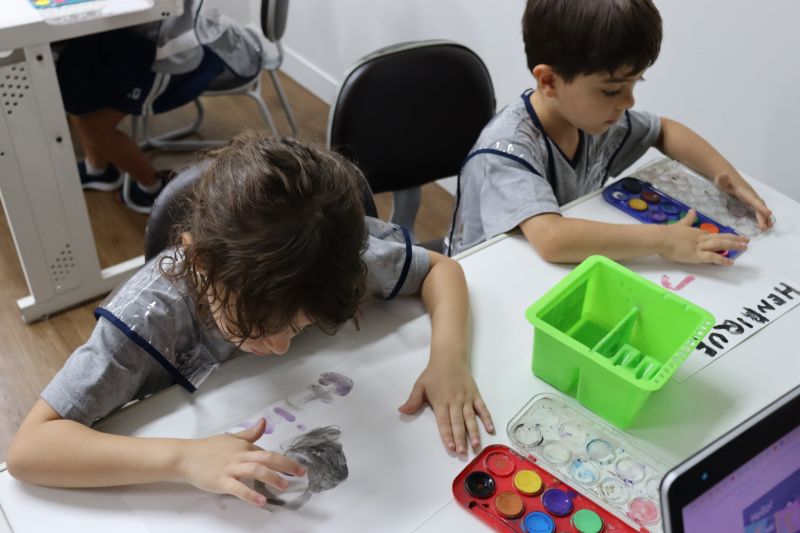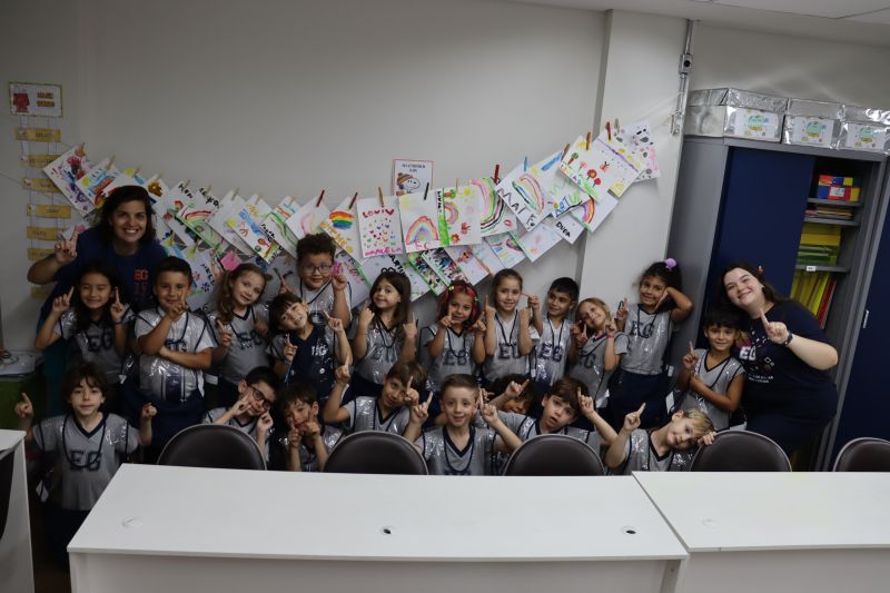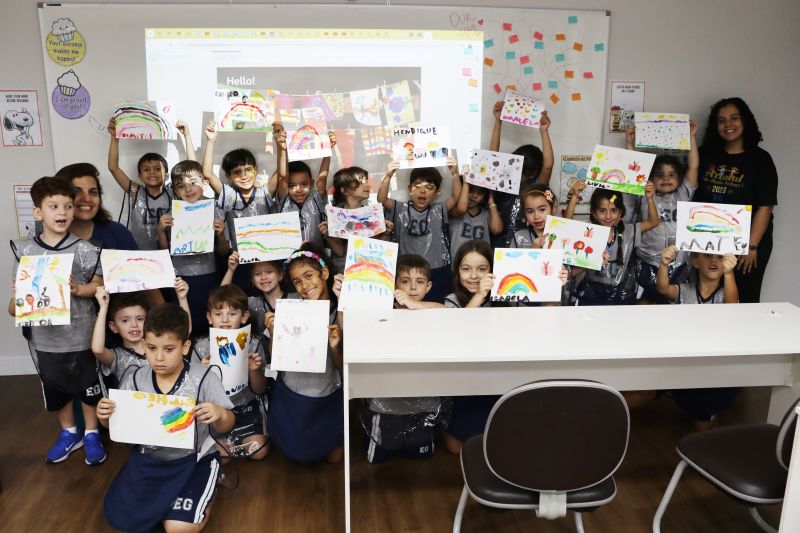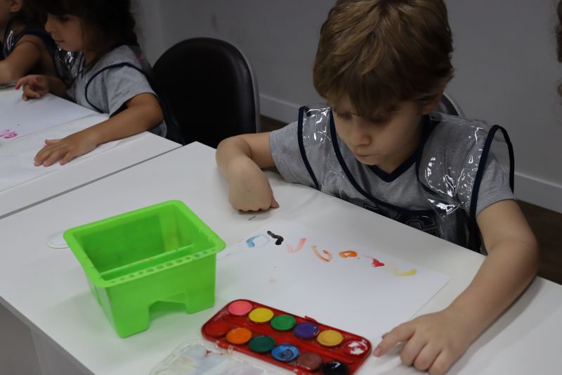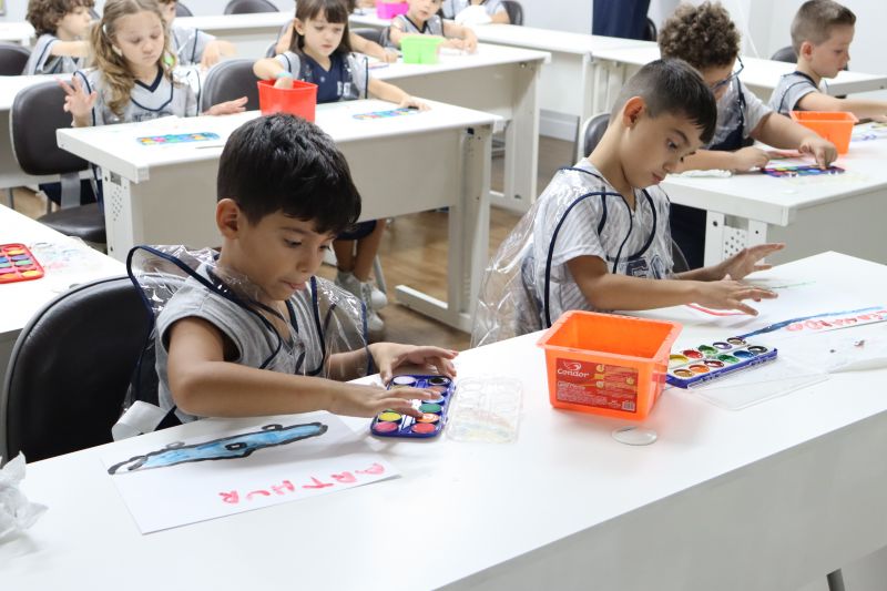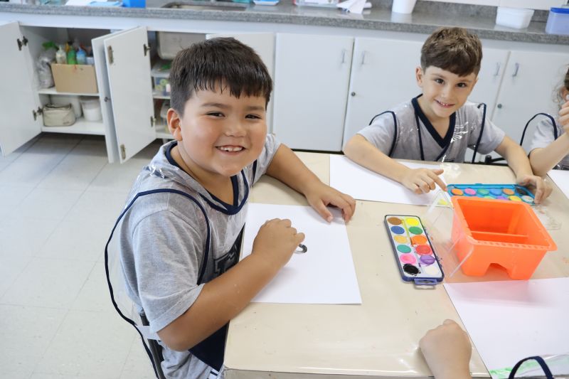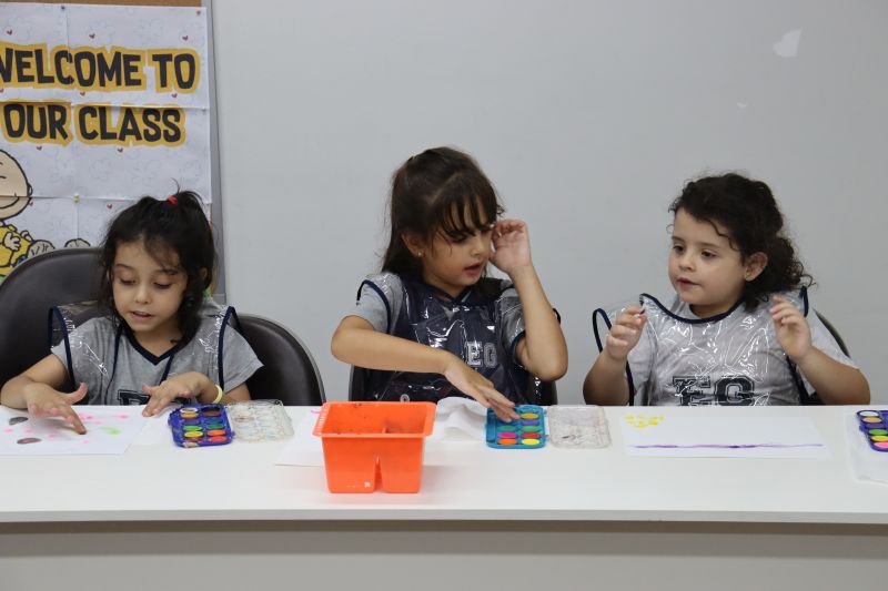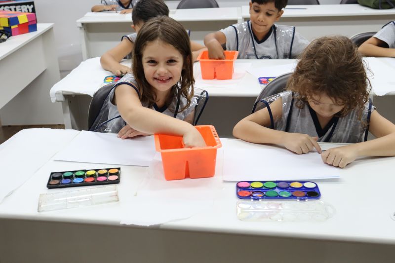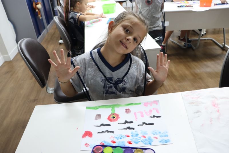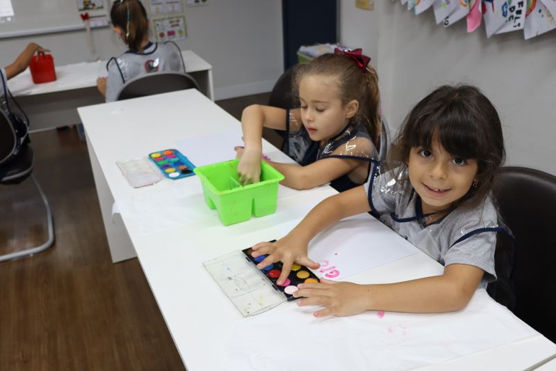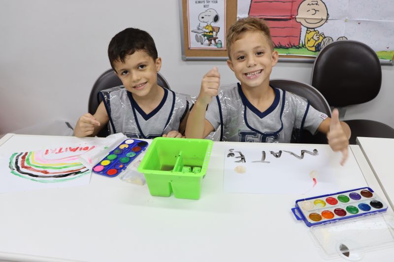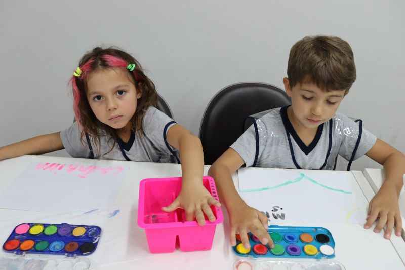 Nossos pequenos estudantes do 1º ano do Ensino Fundamental exploraram a criatividade com a Teacher Roberta. Com os dedos e tintas coloridas, eles fizeram pintura em papel.