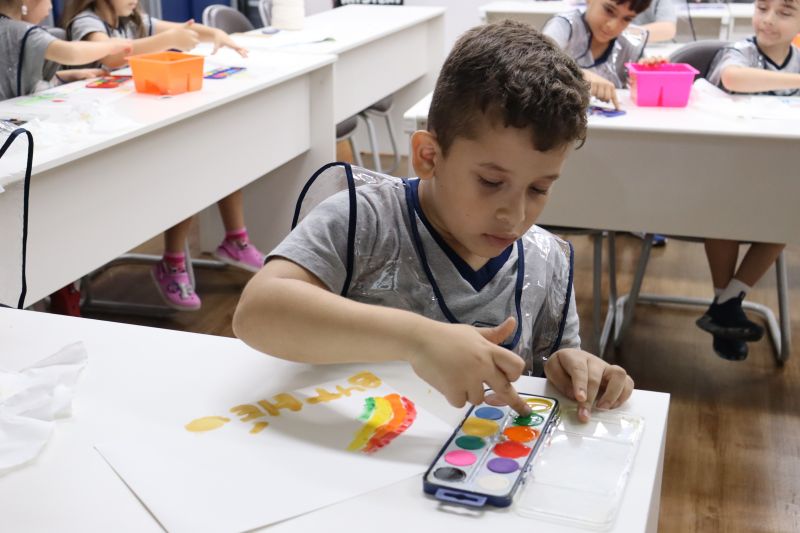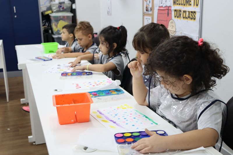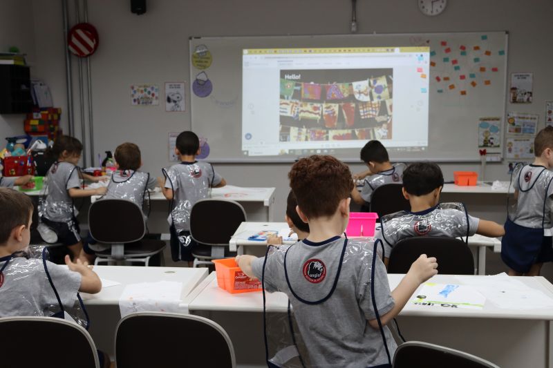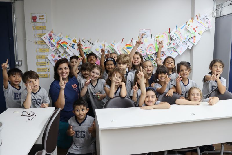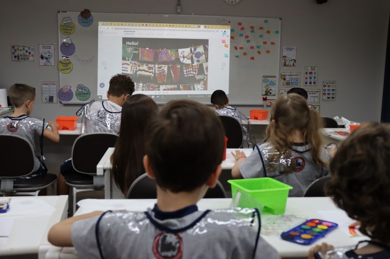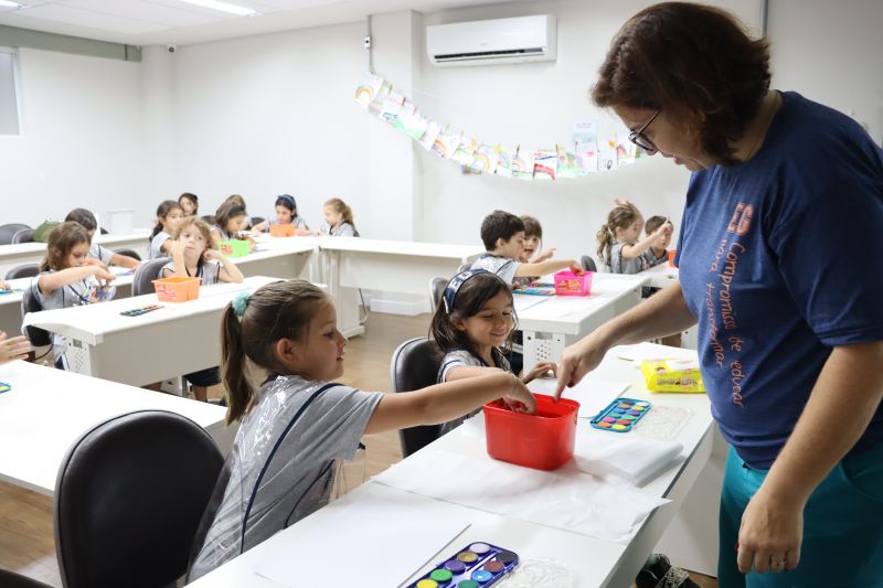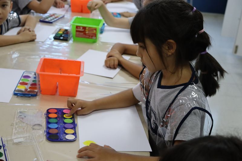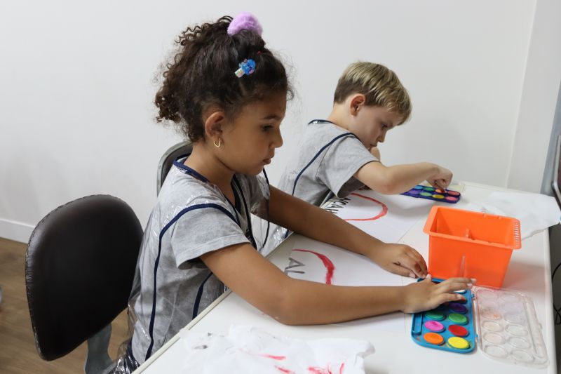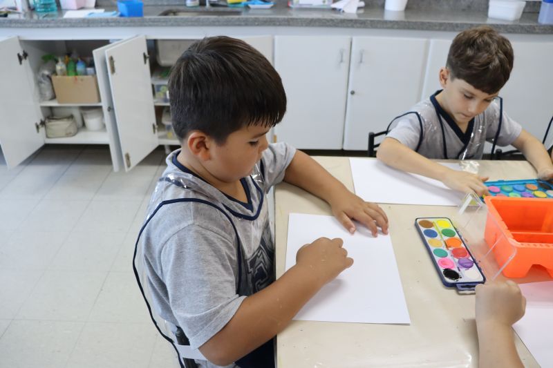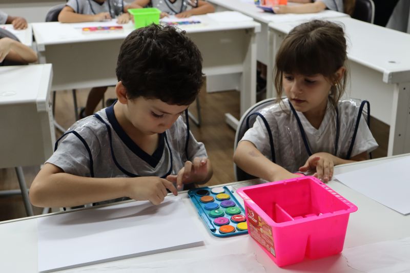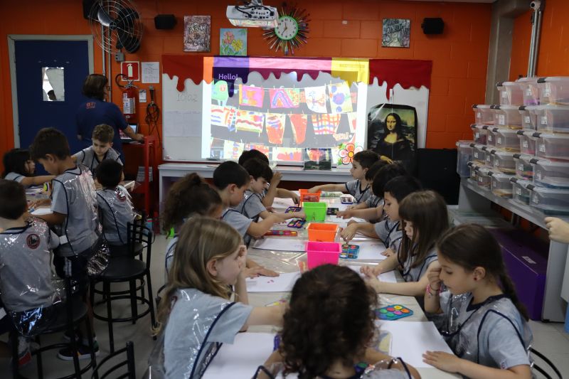 Nossos pequenos estudantes do 1º ano do Ensino Fundamental exploraram a criatividade com a Teacher Roberta. Com os dedos e tintas coloridas, eles fizeram pintura em papel.