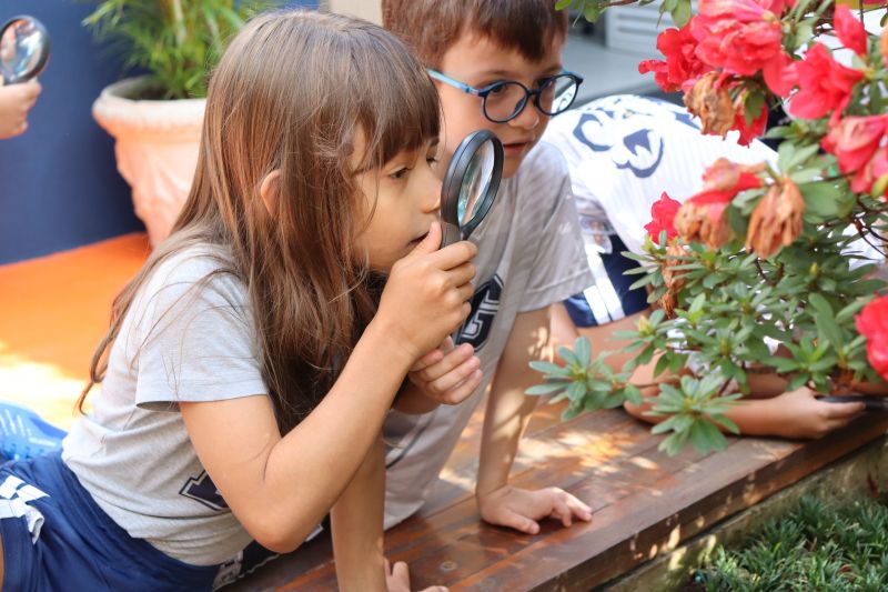 Os estudantes do 2 º ano do EF, acompanhados das Professoras Juliana, Leila, Maria Cristina e Sheila, realizaram uma atividade muito divertida, utilizando lupas.
