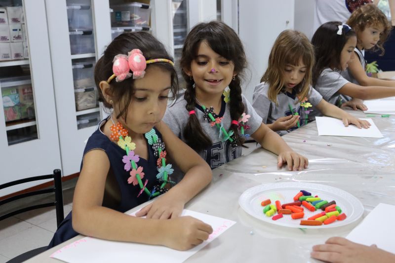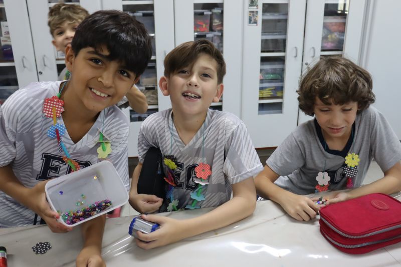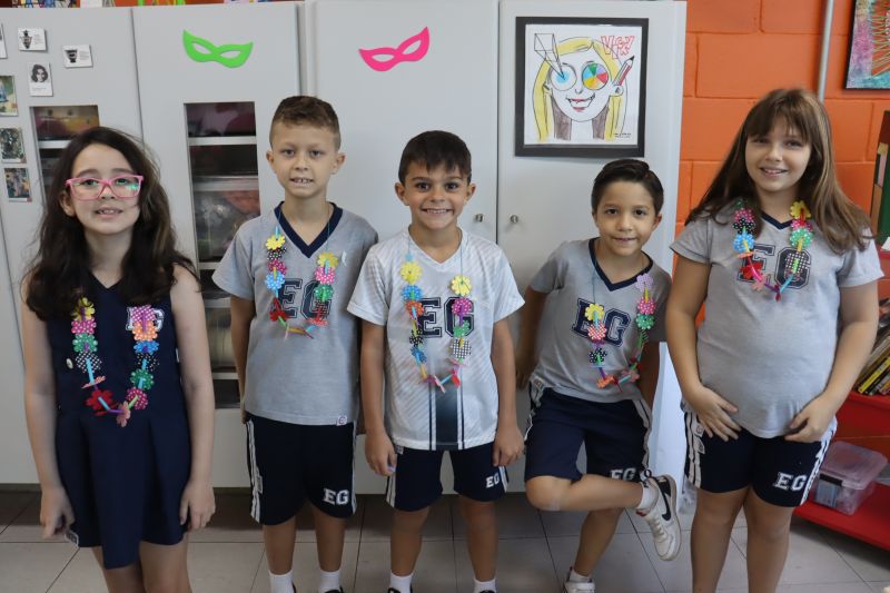 No decorrer das aulas, os estudantes confeccionaram colares carnavalescos únicos e coloridos, expressando sua personalidade em cada detalhe. Além disso, desenharam, em uma folha, tudo o que o Carnaval representa para eles.