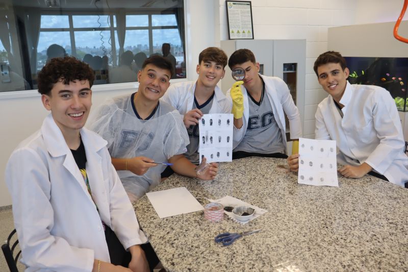 Os alunos do Itinerário de Química (Investigação e Análises Químicas), da 2ª série do EM, participaram de uma aula prática no laboratório, conduzida pelo Professor Alex. O objetivo foi explorar a polaridade das substâncias por meio da impressão digital.