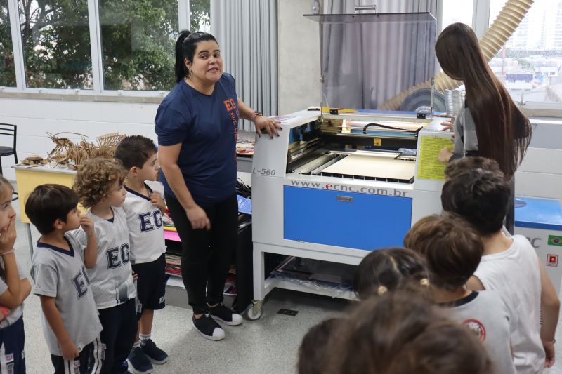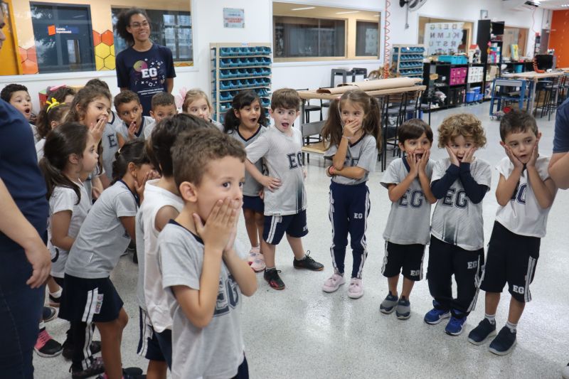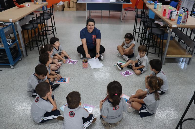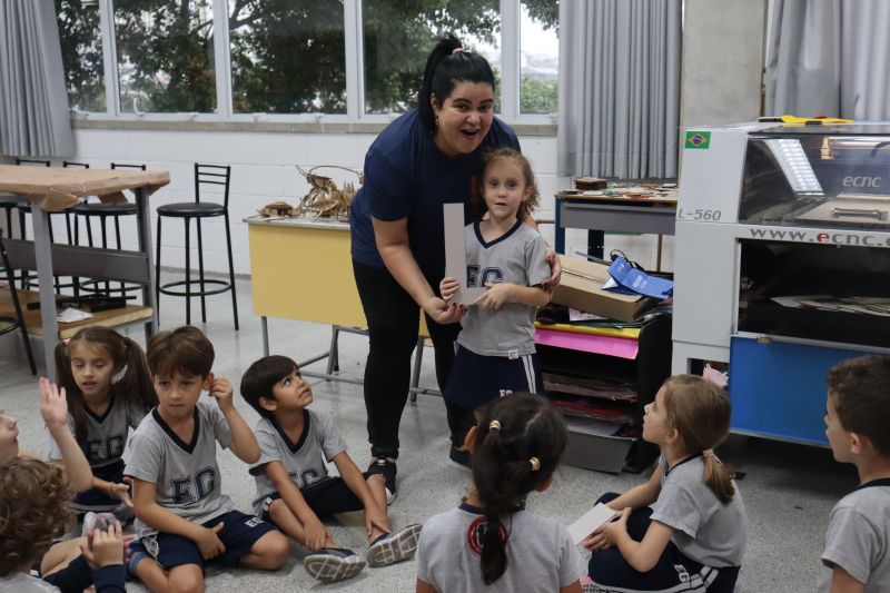 Os alunos da Educação Infantil, acompanhados pela Professora Erika, de Projeto de Vida, e pela Maressa, participaram de uma atividade especial no Espaço Maker.