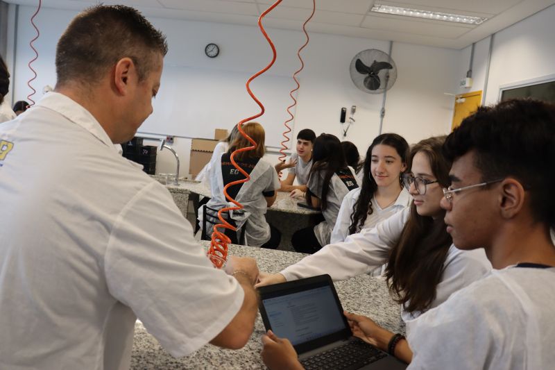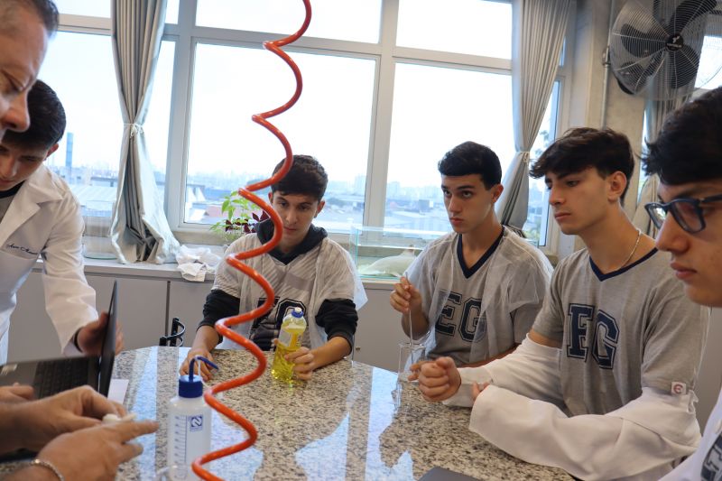 Ao final do experimento, cada grupo discutiu os procedimentos realizados e elaborou um relatório detalhado com as etapas do processo e os resultados observados. A atividade foi baseada nos conteúdos do Módulo 4 do material Anglo, que aborda o tema Material Genético.