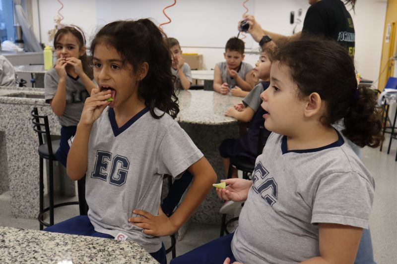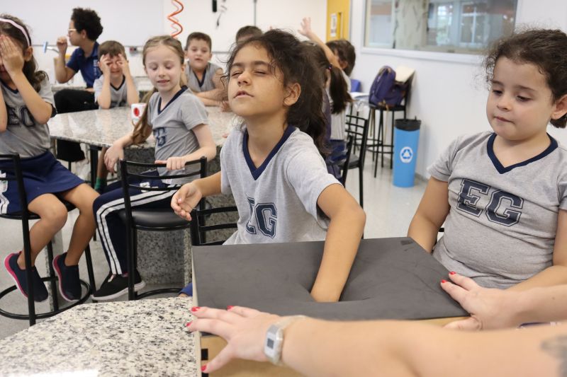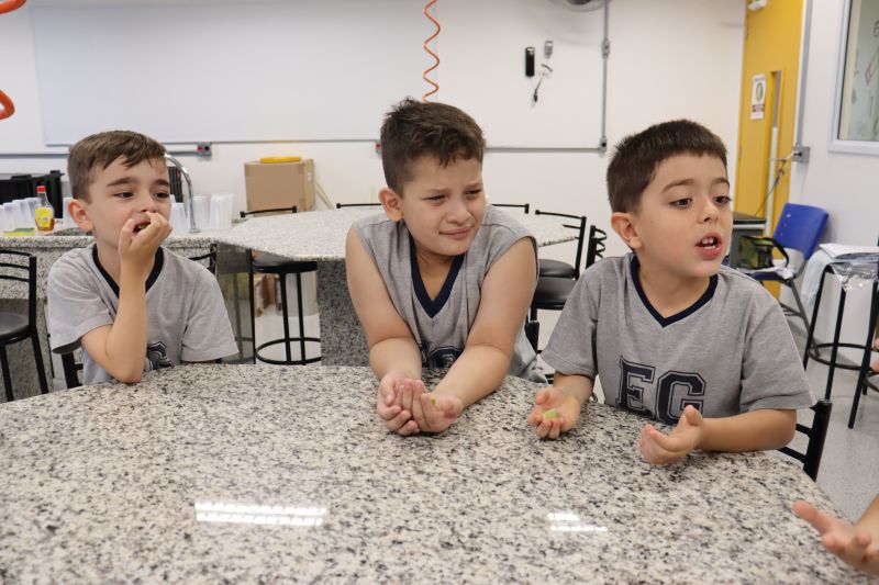 Foram realizadas algumas experiências com o objetivo de aguçar os sentidos e identificar qual deles era necessário em cada uma delas, trabalhando o comportamento de cientista dos estudantes.