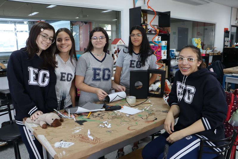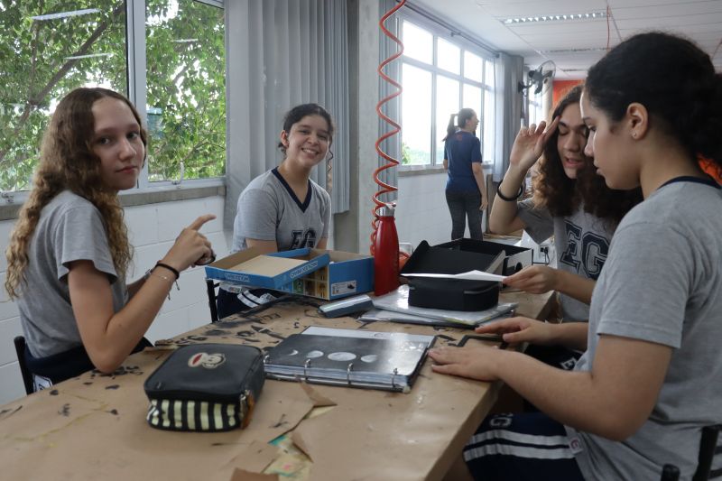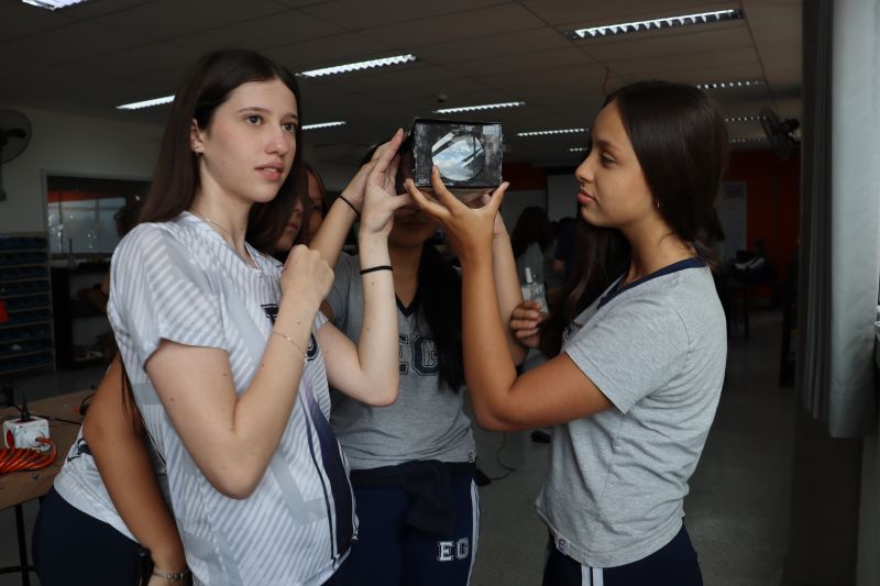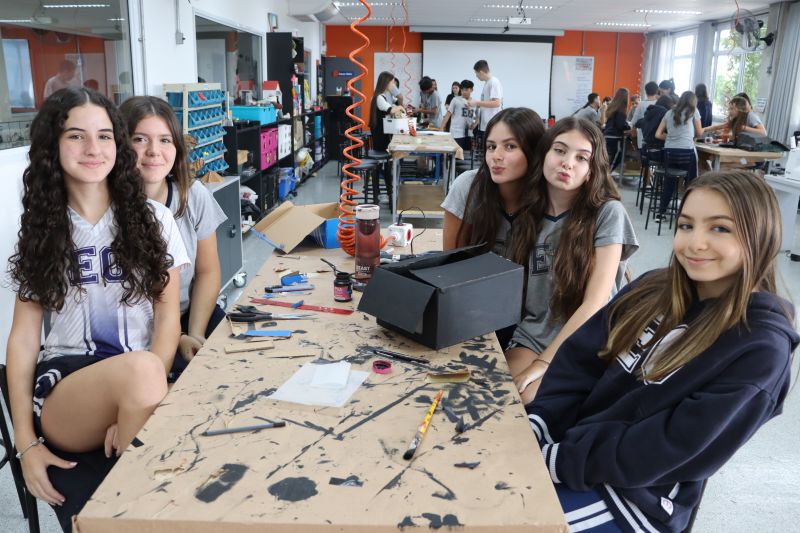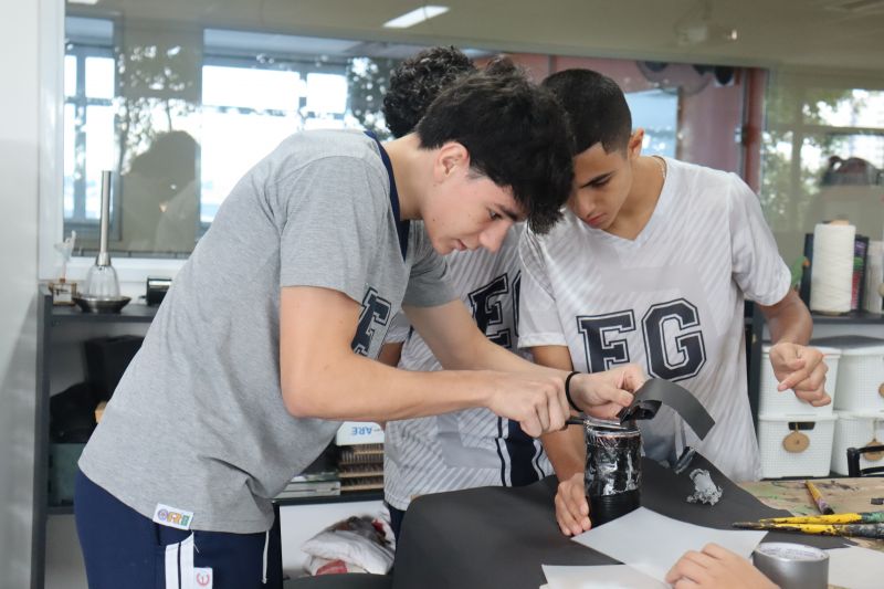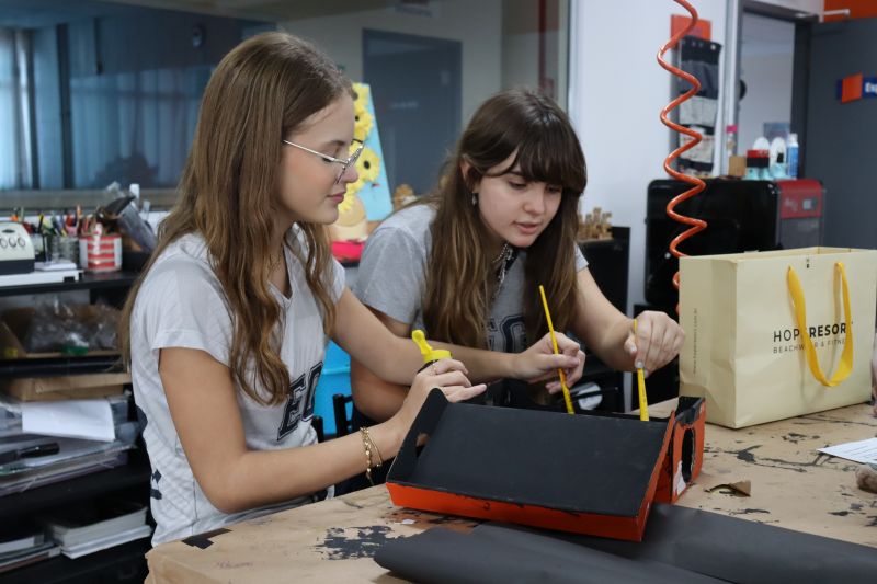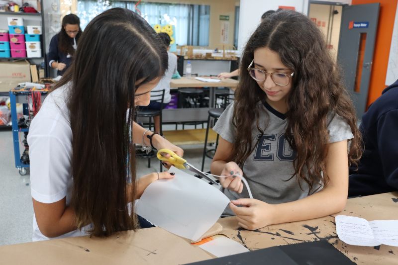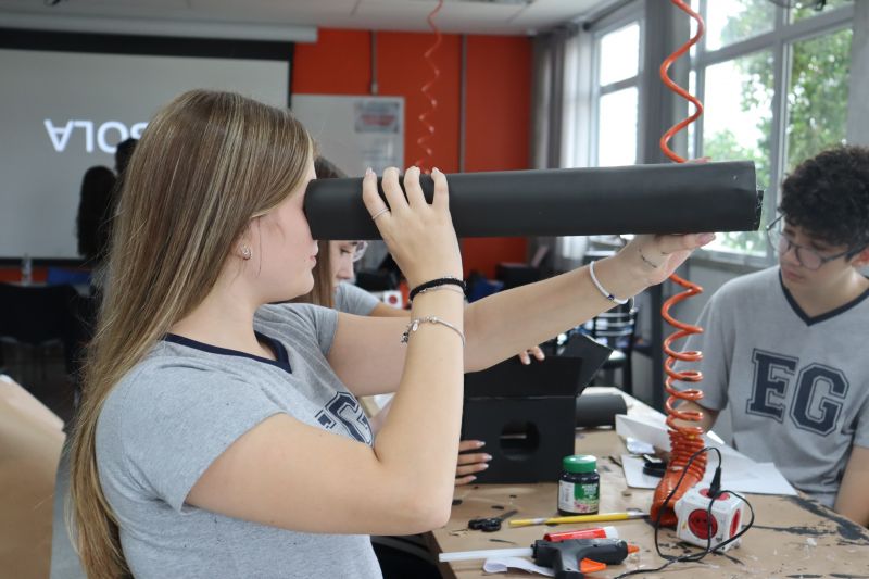 Os alunos 9º ano EF, sob orientação da Prof.ª Bárbara, de Ciências, foram ao Espaço Maker para confeccionar uma câmara escura de orifício.