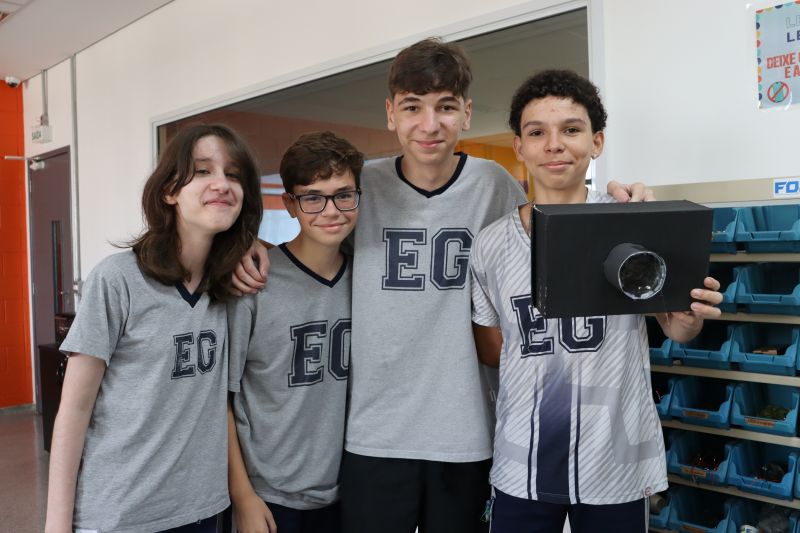 Os estudantes foram divididos em grupos, e cada grupo confeccionou sua câmara. A execução desse trabalho teve o objetivo de promover um entendimento mais amplo do conteúdo estudado em classe, através da pesquisa, estruturação das etapas e montagem da câmara escura.