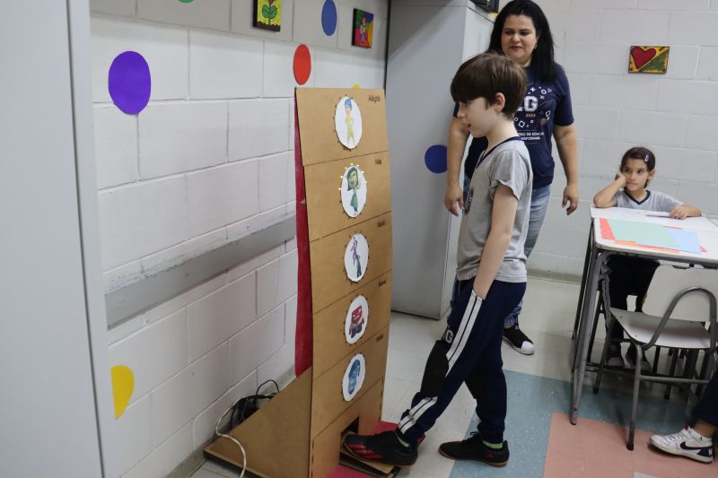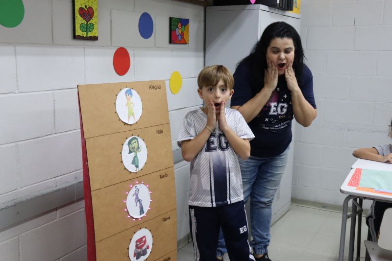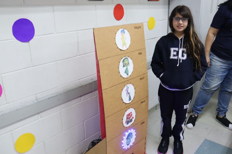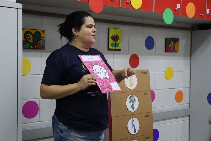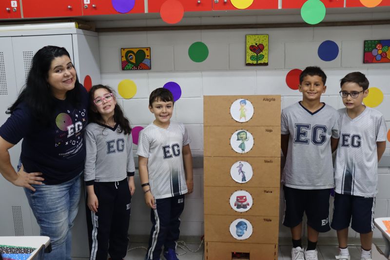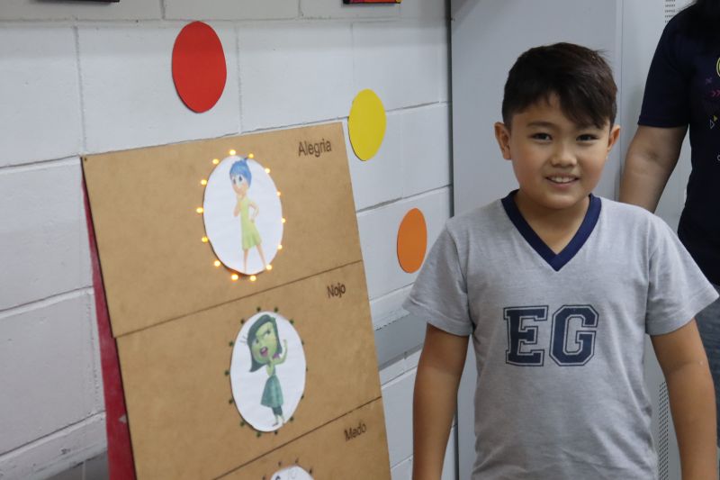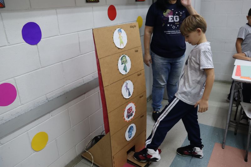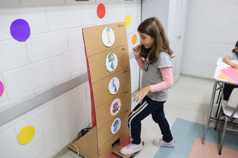 Nas aulas de Projeto de vida, os estudantes ouviram a história de Joana e seus sentimentos, da autoria da Professora, “mediram” suas emoções no detector dos sentimentos, confeccionaram os bonecos do medo e do erro, participaram de dramatizações sobre o medo de errar e montaram a legenda dos sentimentos, na qual cada sentimento recebeu uma cor, possibilitando visualizar os sentimentos e sua frequência no gráfico montado em sala.