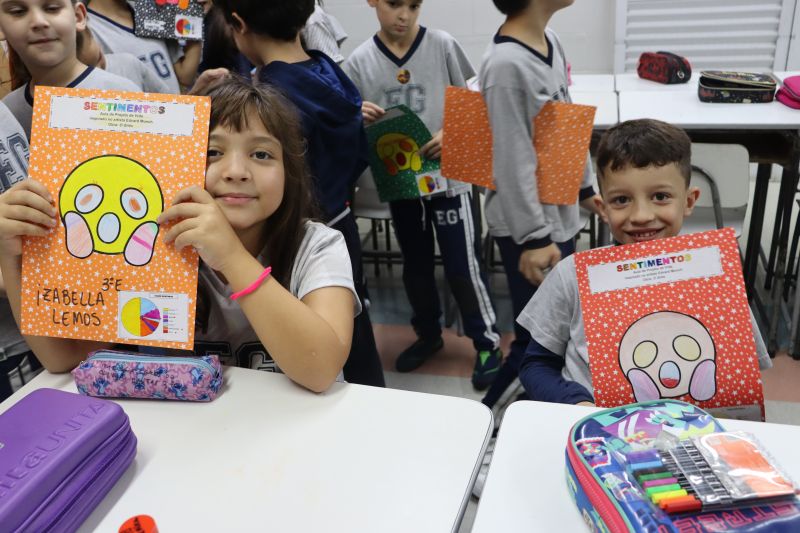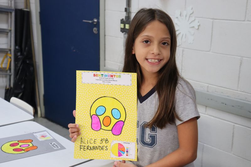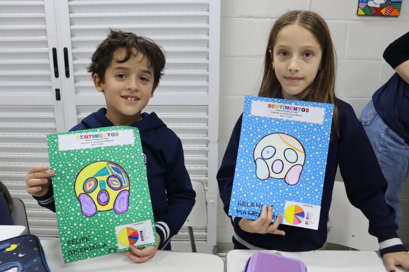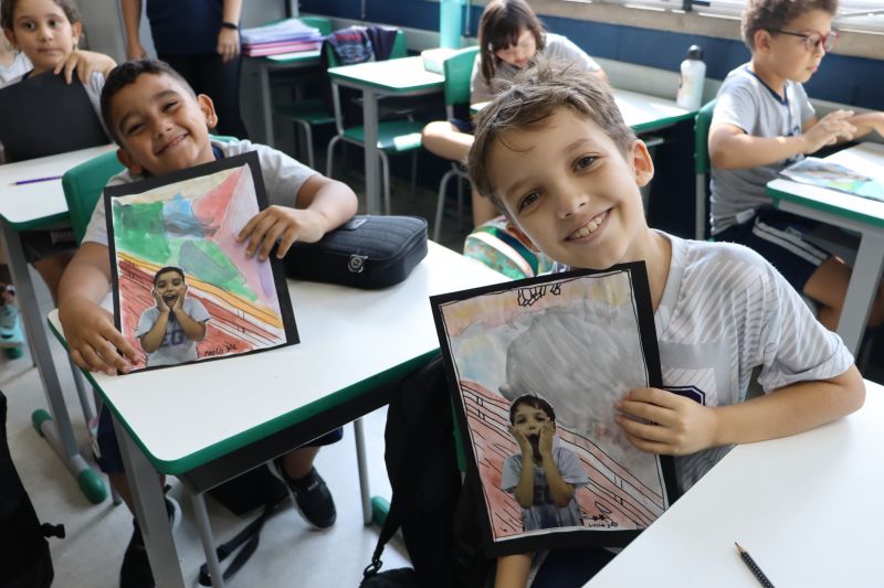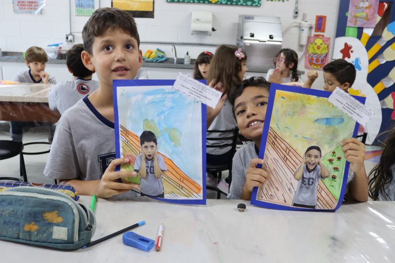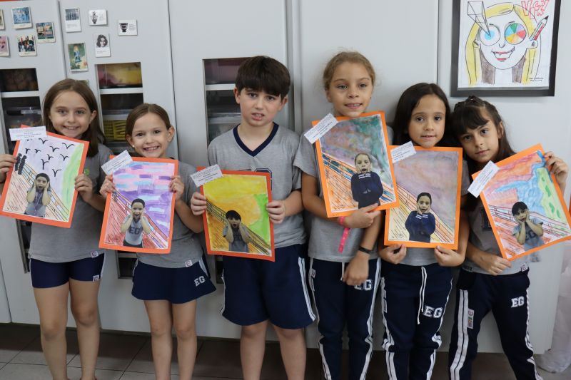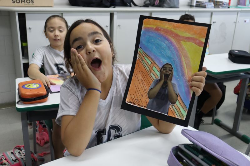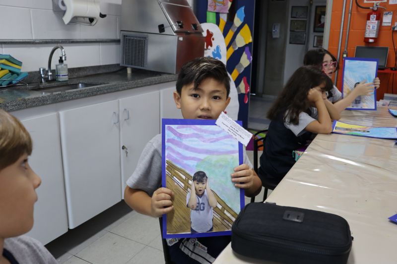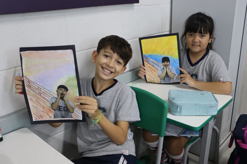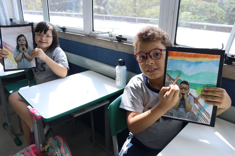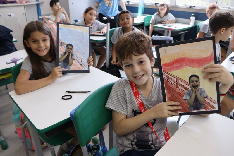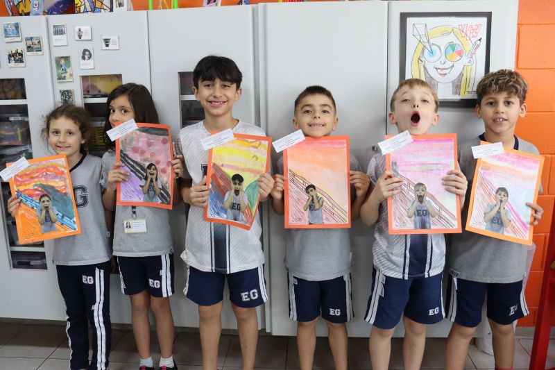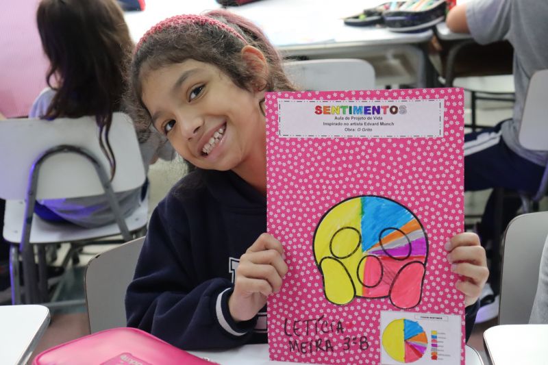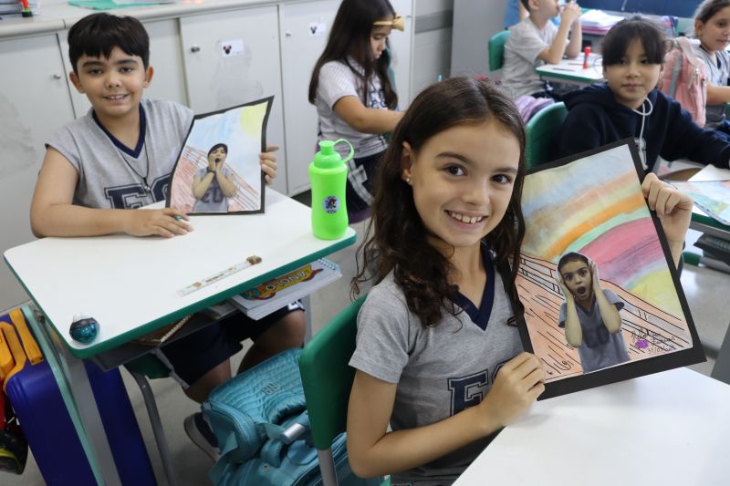 Com o objetivo de trabalhar o desenvolvimento socioemocional, impactando a saúde mental e o desempenho acadêmico dos estudantes, as Professoras Erika, de Projeto de Vida, e Vick, de Arte, inspiradas na obra O GRITO, do artista norueguês Edvard Munch, realizaram o Projeto Sentimentos com os estudantes do 3º ano do Ensino Fundamental.