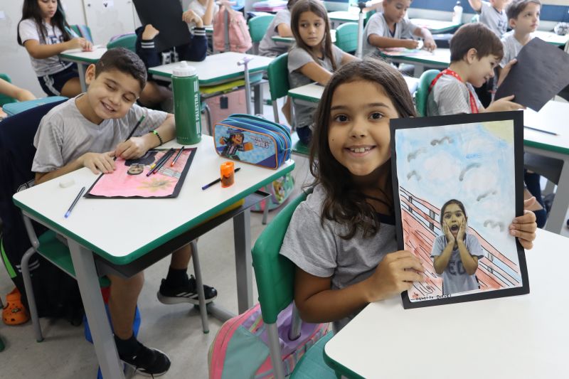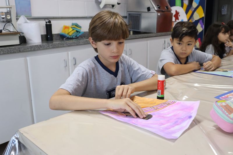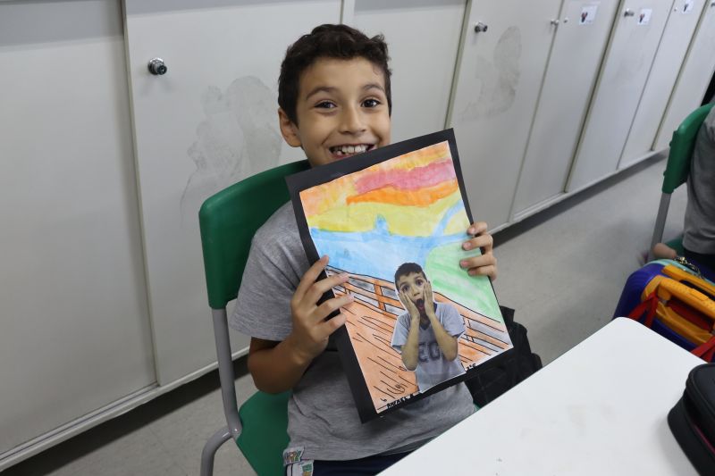 Nas aulas de Arte, os estudantes observaram a mesma obra e refletiram sobre as sensações que ela transmite, além de conheceram curiosidades sobre a obra e sobre o artista.