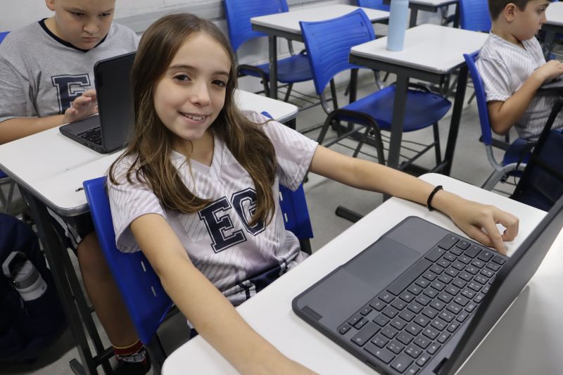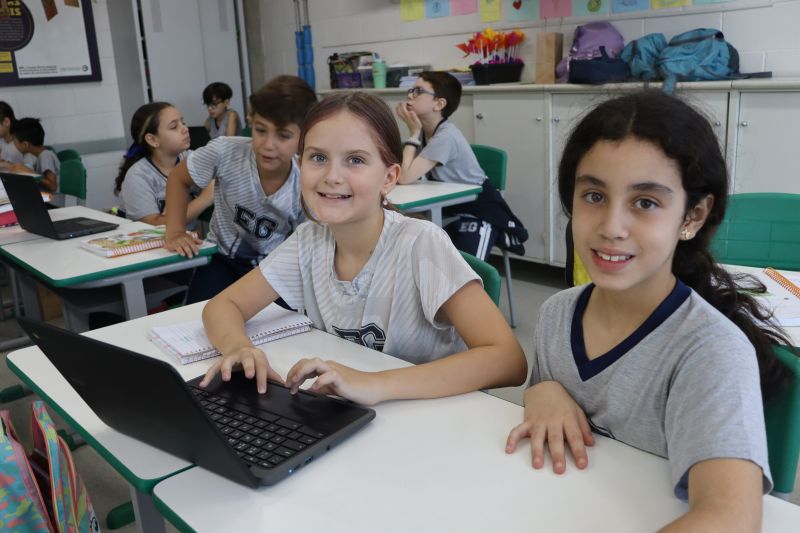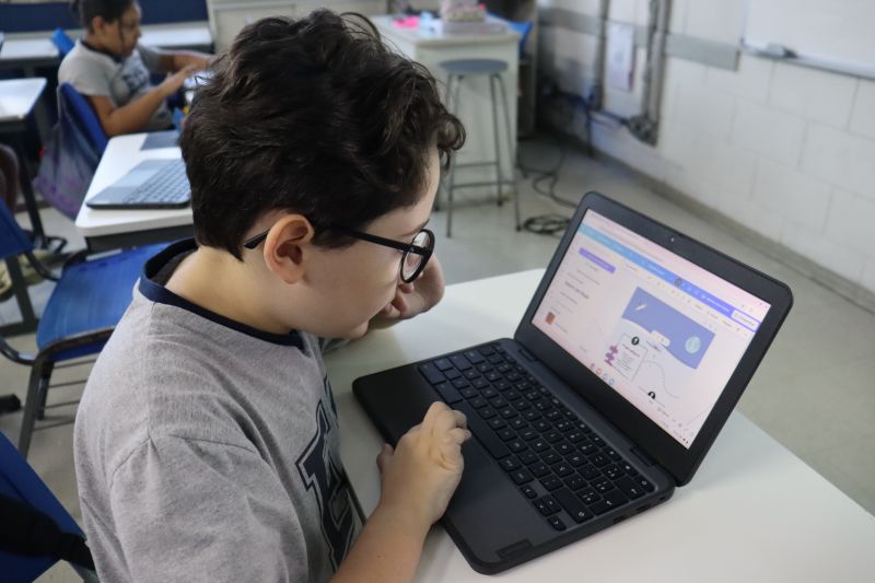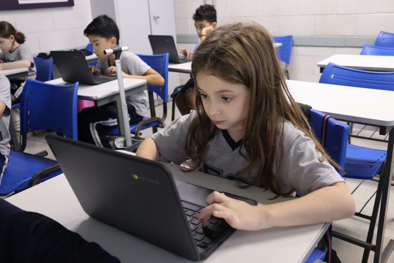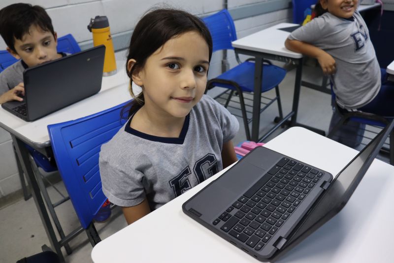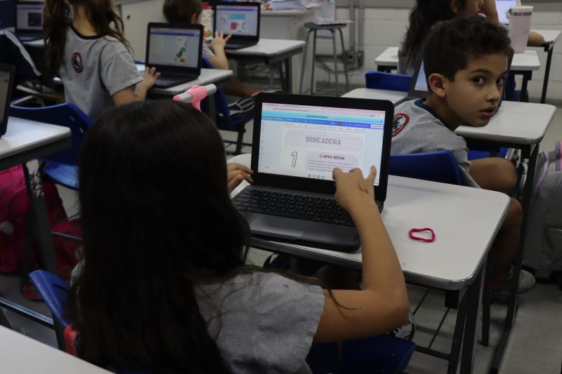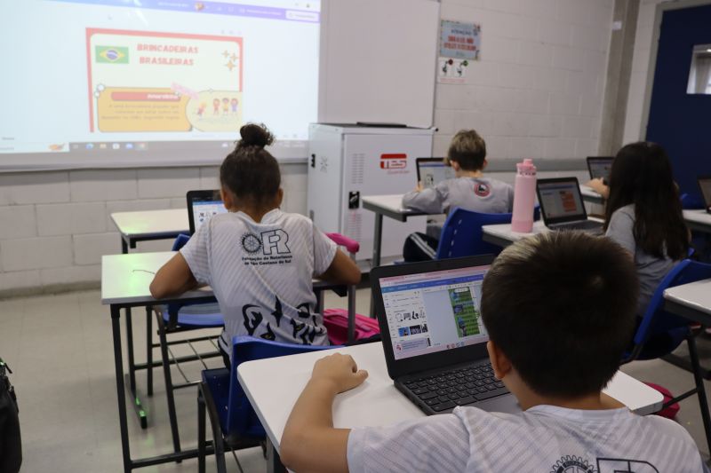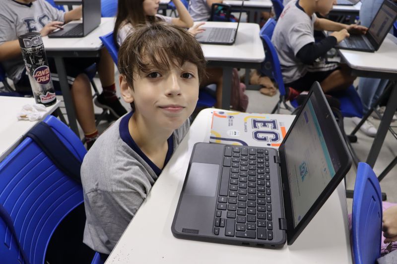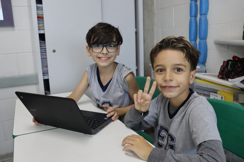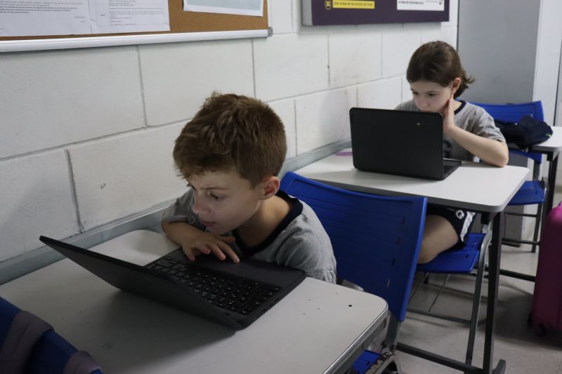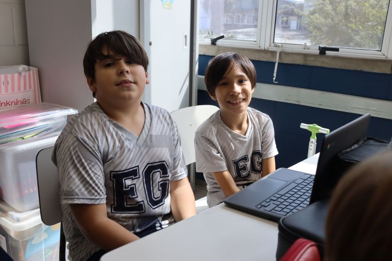 Utilizando o Chromebook, abriram o Canva, ferramenta digital de design gráfico, para criarem infográficos divertidos sobre o tema “Brincadeiras Brasileiras”. Durante a atividade os alunos pesquisaram e resgataram jogos e atividades tradicionais de diversas regiões do país.