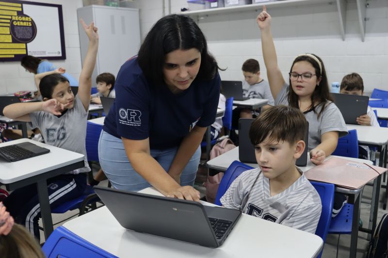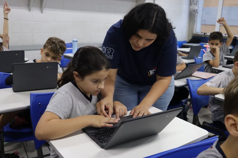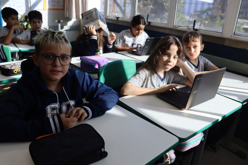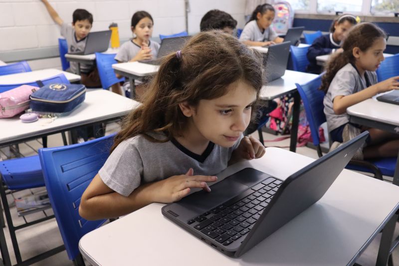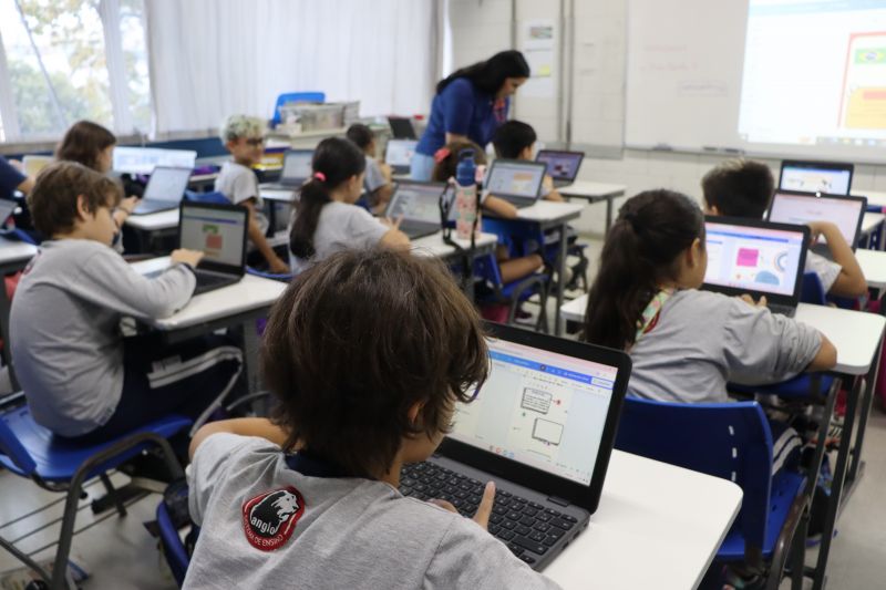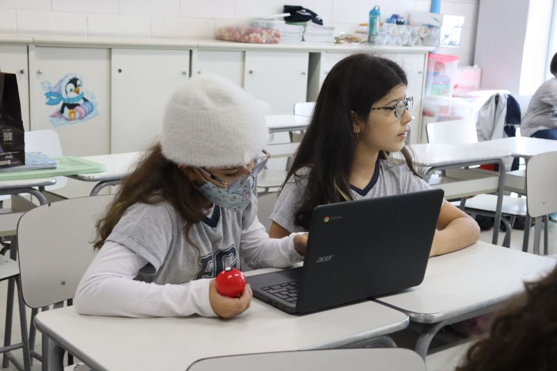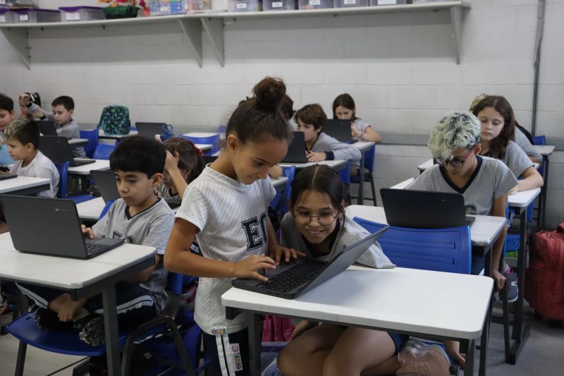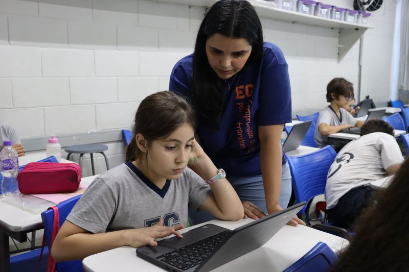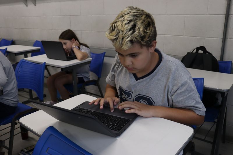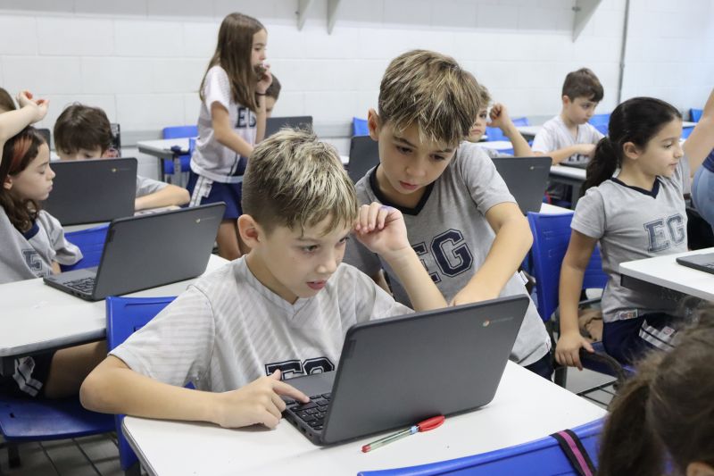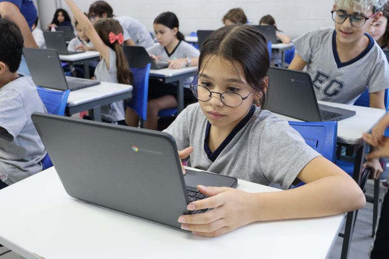 Utilizando o Chromebook, abriram o Canva, ferramenta digital de design gráfico, para criarem infográficos divertidos sobre o tema “Brincadeiras Brasileiras”. Durante a atividade os alunos pesquisaram e resgataram jogos e atividades tradicionais de diversas regiões do país.