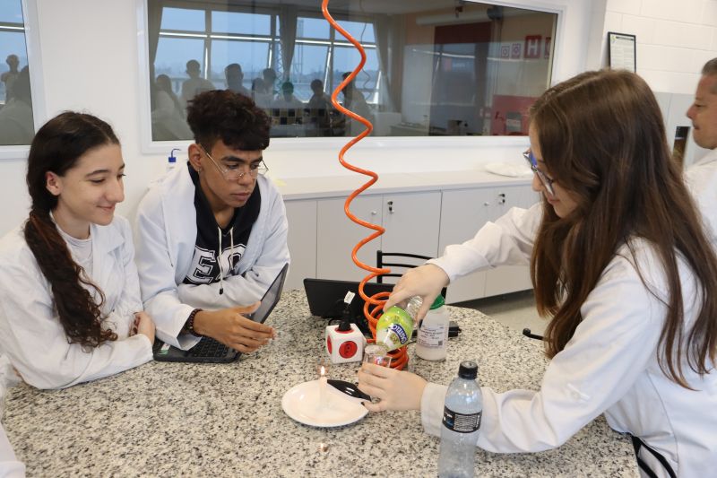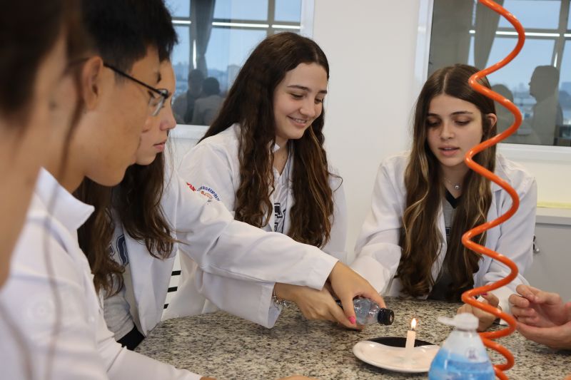 Durante o experimento, os estudantes aprenderam algumas maneiras de neutralizar um incêndio utilizando CO2.